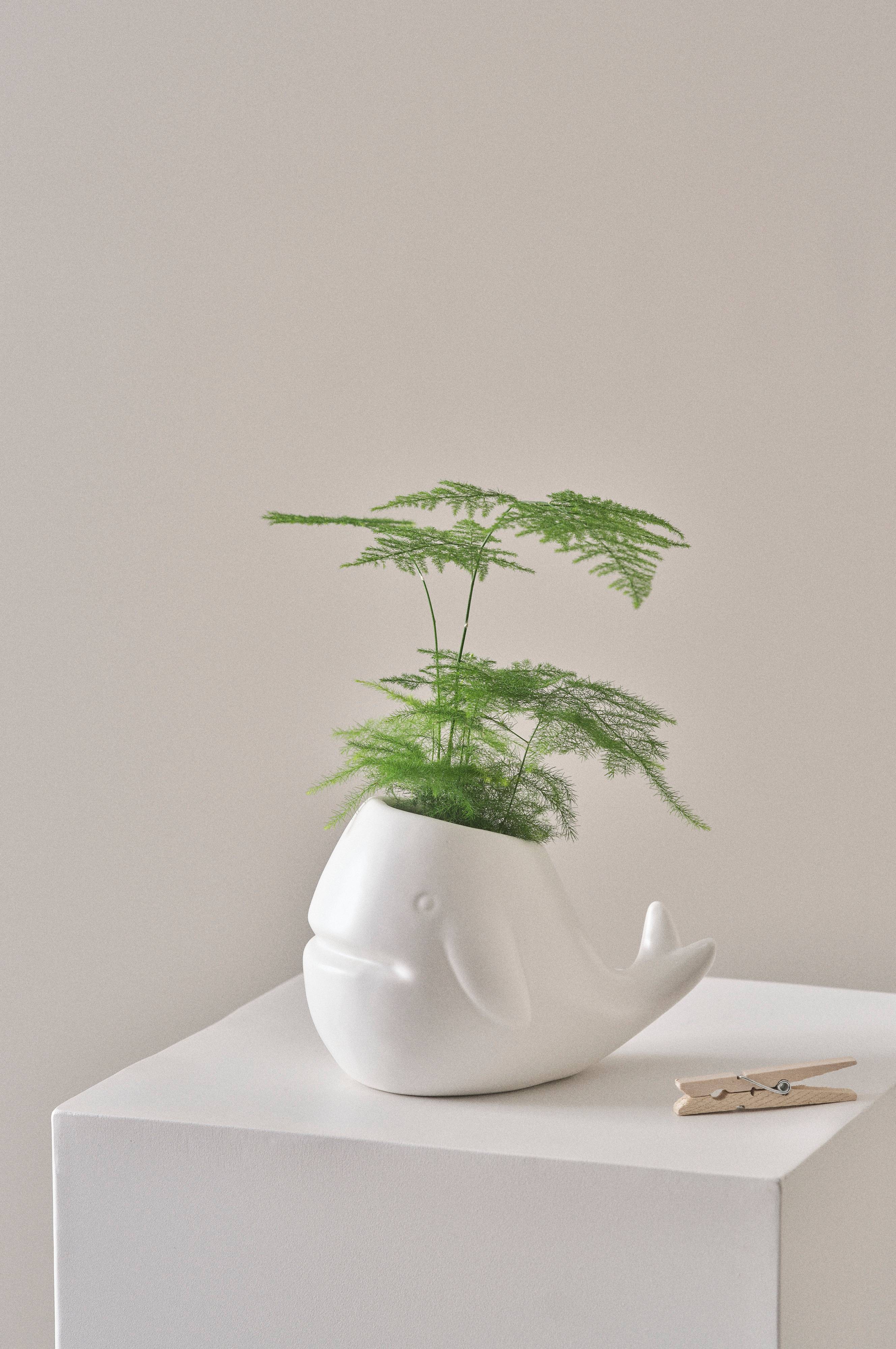 Ręcznie wykonana mini doniczka z porcelany o matowej glazurze. Słodki wieloryb będzie świetnie pasować do niewielkich roślin. Będzie również idealnym miejscem na drobiazgi.