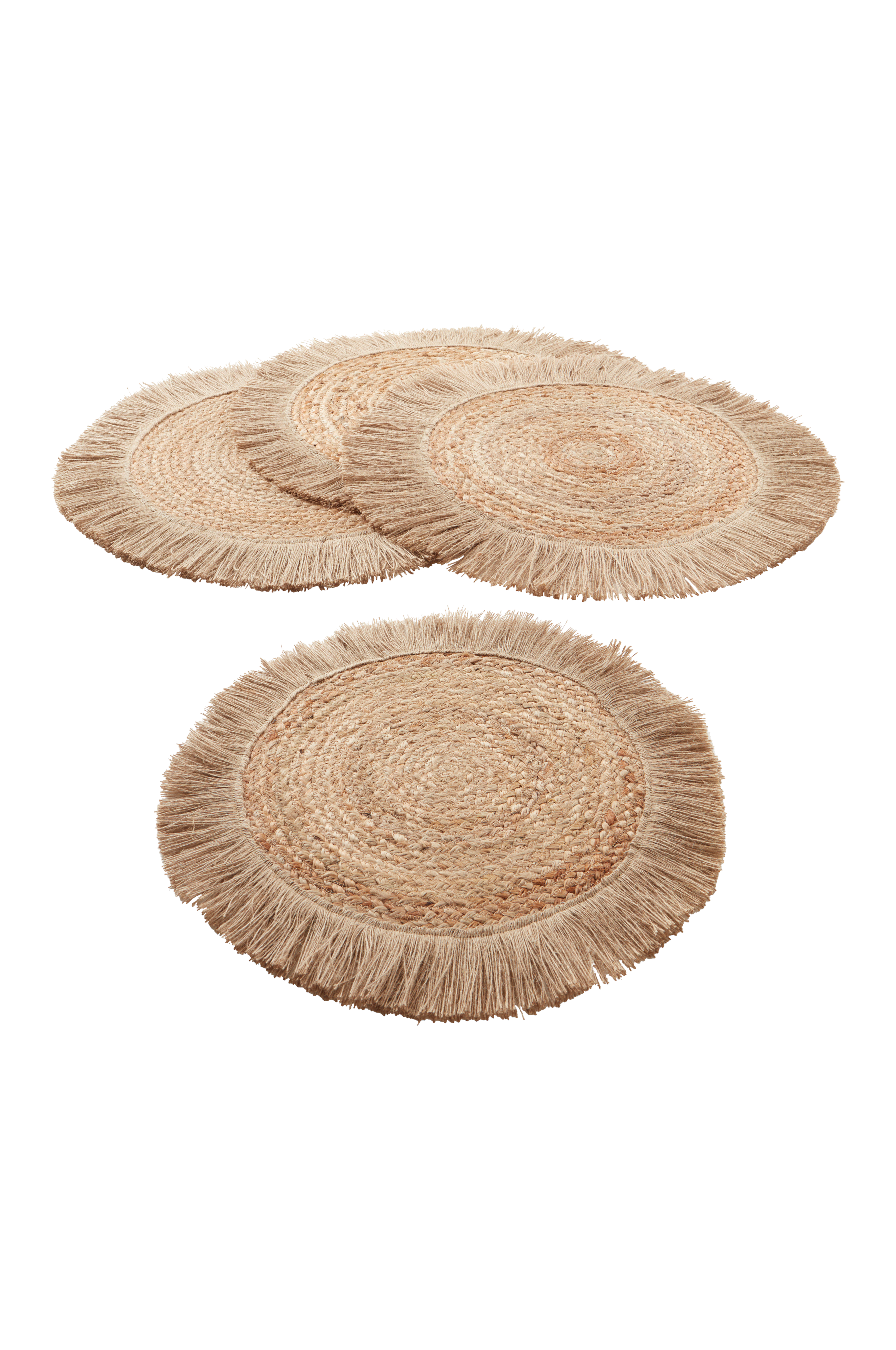 4 okrągłe maty stołowe plecione z juty z pięknymi frędzlami wokół brzegów. Juta to uroczy i rustykalny materiał, który nadaje nakryciu naturalny charakter. Z jutowymi matami stołowymi stworzysz intrygujące nakrycie, a wytrzymały materiał sprawdzi się równie dobrze we wnętrzach, jak i na zewnątrz. Te maty stołowe idealnie pasują do spokojnych wieczorów przy grillu.