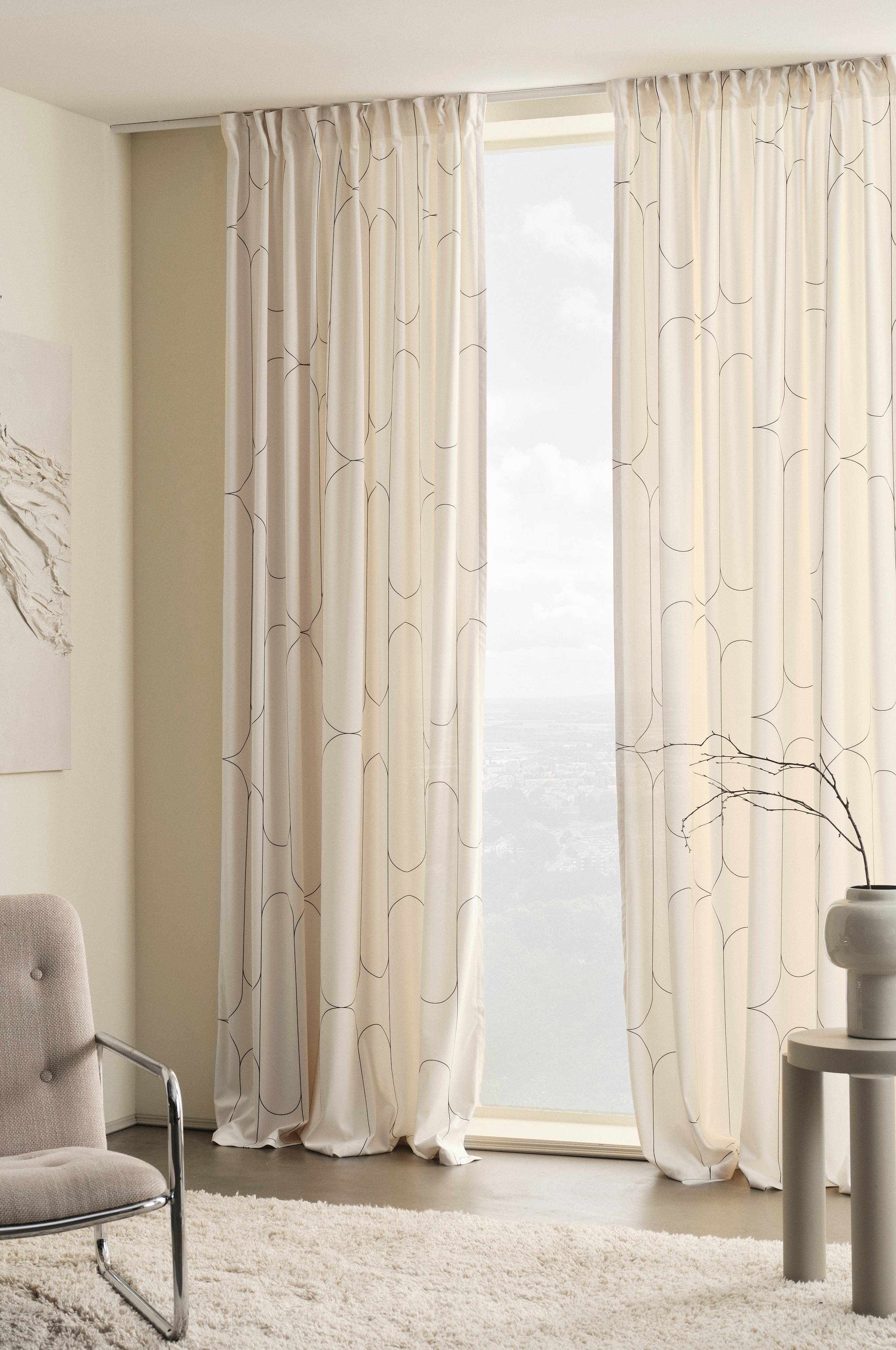 2 zasłony wielofunkcyjne z poliestru ze stylowym, delikatnym wzorzystym nadrukiem. AIDA wprowadzi do pomieszczenia światło i klasyczną aurę. Zasłony mają wszytą taśmę wielofunkcyjną, dzięki czemu można je zawiesić na haczykach lub przy użyciu tunelu czy krytych szelek.