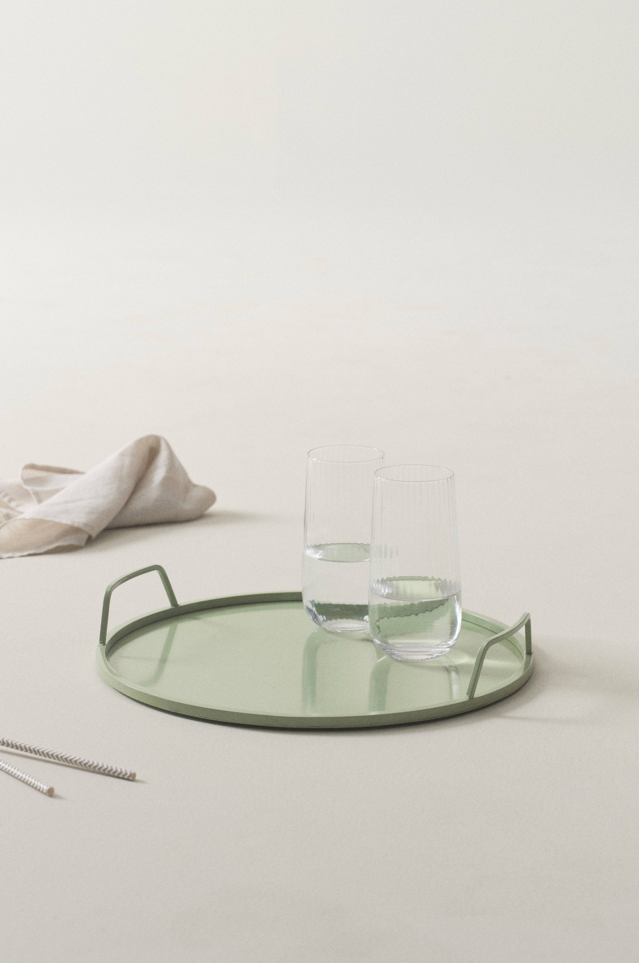 Duża taca z żelaza. Taca ANYA odznacza się prostym i stylowym designem. Dzięki uchwytom tacę można łatwiej przenosić i stawiać na stole, a niska burta chroni przed rozlaniem.