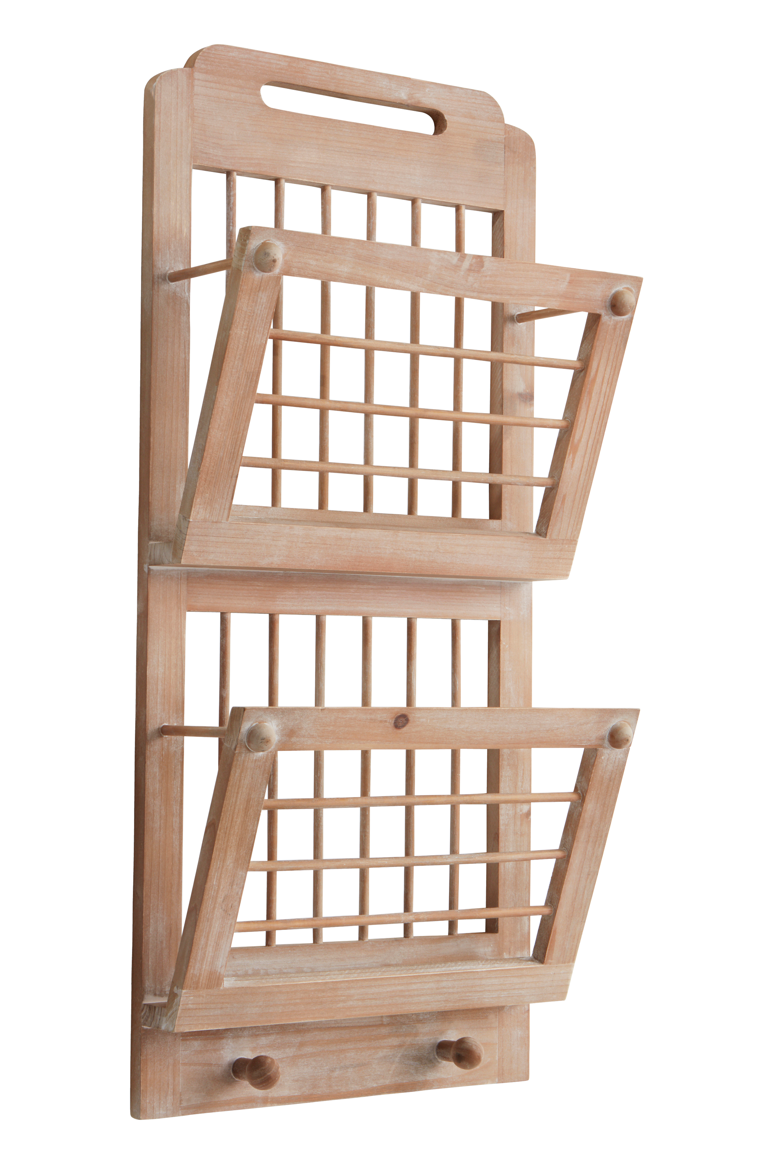 ASTON to bielona półka na gazety wykonana z bambusa i świerku, do zawieszenia na ścianie. Sprawdzi się też w pokoju dziecięcym jako wspaniała półka na pluszaki. W dolnej krawędzi znajdują się dwa drewniane kołki, na których można zawiesić na przykład torebki, ubrania albo zabawki. Dwa klasyczne otwory z tyłu, umożliwiające zawieszenie na ścianie.