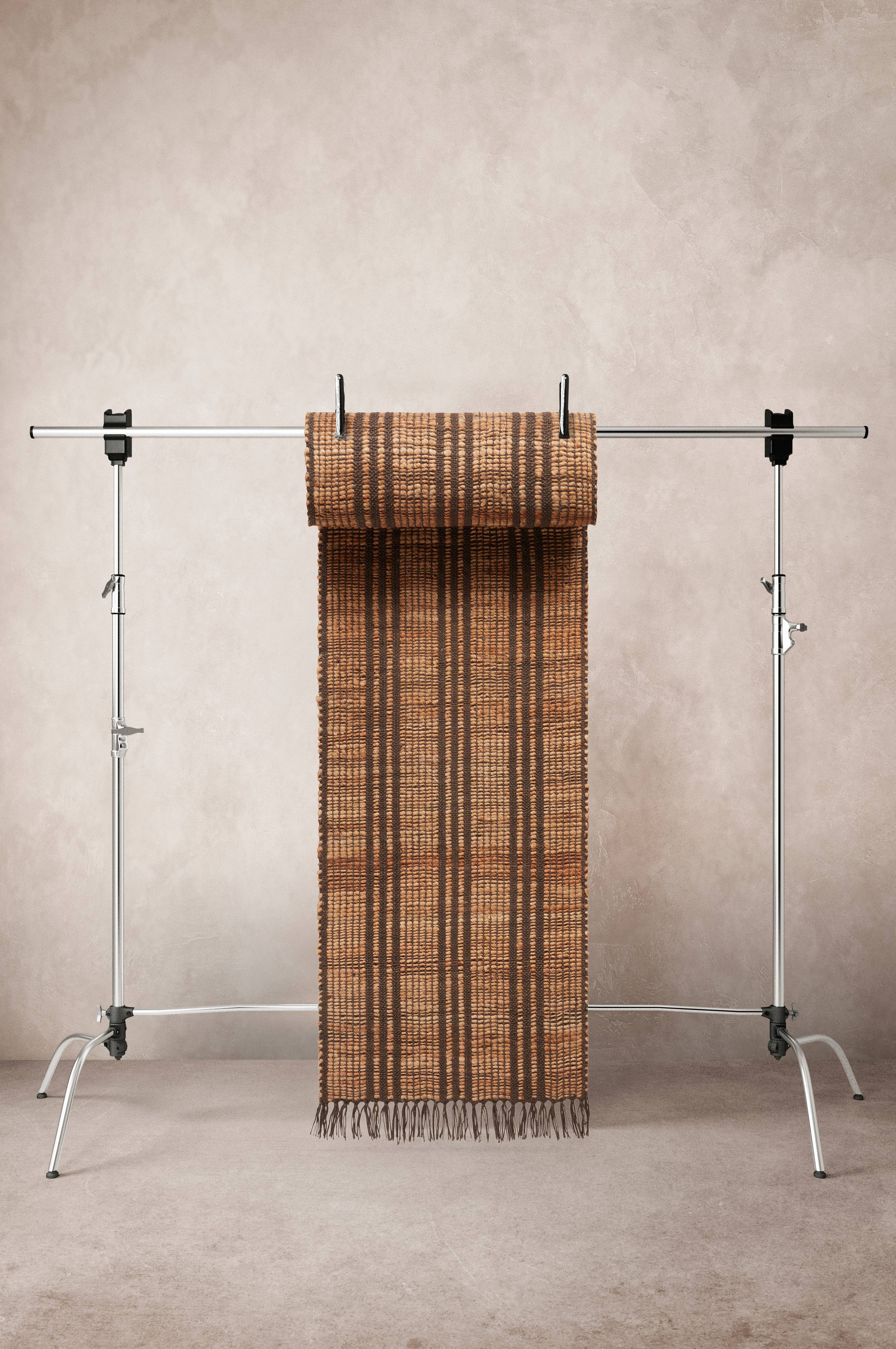 Ręcznie tkany chodnik z naturalnej juty z plecionymi czarnymi paskami i czarnymi frędzlami. Juta to naturalny materiał o rustykalnym charakterze, który tworzy przyjemną, swobodną atmosferę. Dywan ma filcowy podkład, który zapewnia miękkość i stabilność. Ręcznie wykonany dywan to eleganckie rękodzieło, więc każdy egzemplarz jest unikalny. Ten podłużny dywan często sprawdza się w korytarzach, a może nawet w pomieszczeniu gospodarczym? Grubość 1 cm. 2200 g/m².