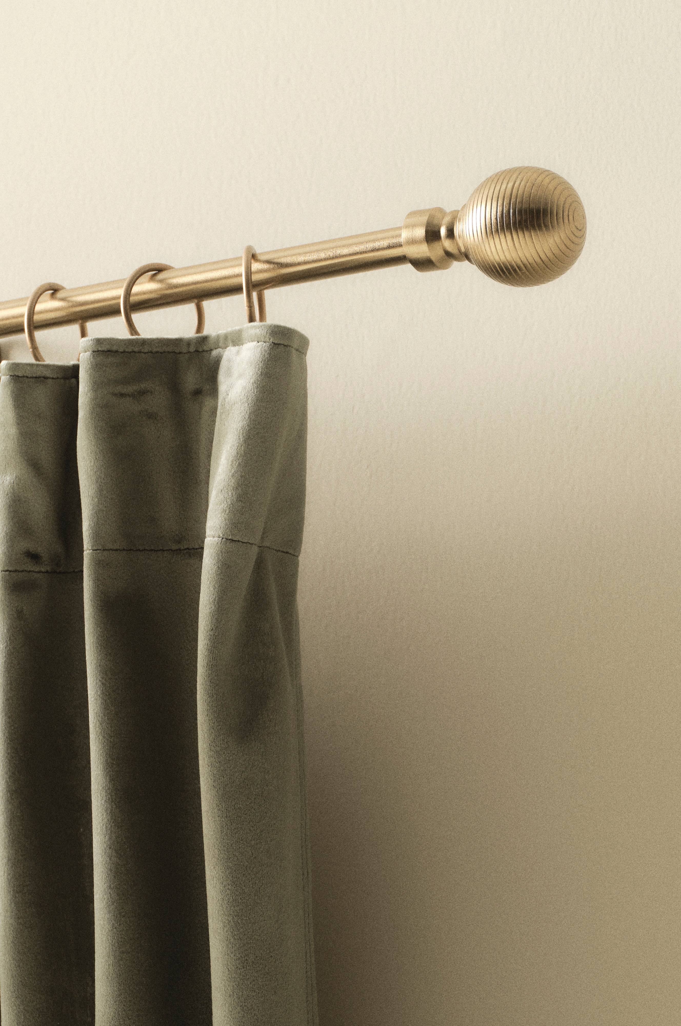 Karnisz z dekoracyjnymi końcówkami, całość wykonana z metalu. BALISTA zakończony jest gałkami ozdobionymi strukturalnymi paskami. Końcówki przykręcane są do karnisza. Dwa wsporniki, śruby oraz kołek w zestawie. Weź pod uwagę, że najlepszy w danym przypadku rodzaj zawieszenia zależy od powierzchni, na której ma zostać zamontowany.