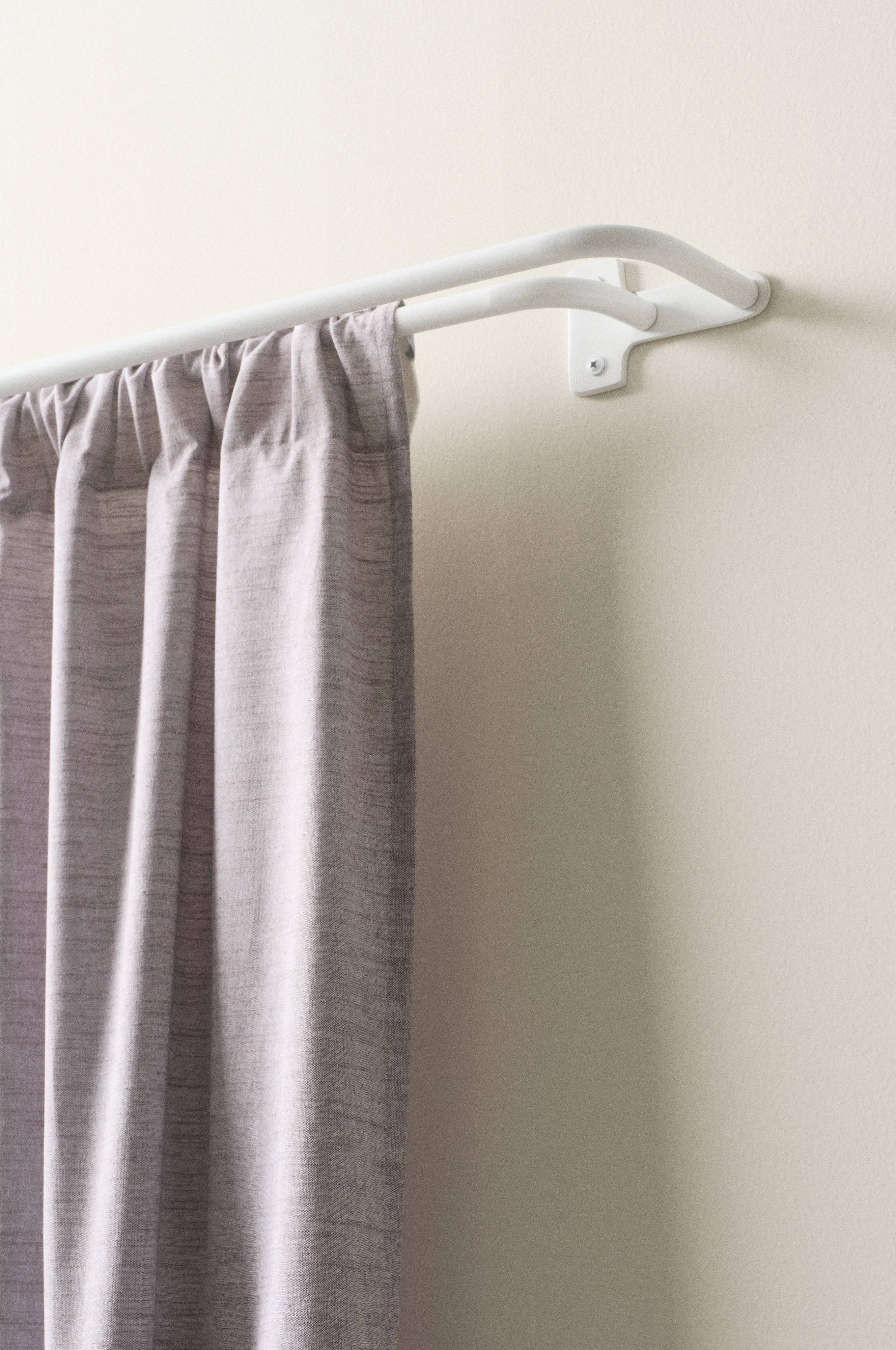 Karnisz z aluminium. Karnisz ma miękko zagięte końce mocujące go do ściany, dzięki czemu idealnie pasuje do zasłon zaciemniających, które zablokują światło również po bokach. Karnisz nie ma przez to ozdobnych gałek na końcach, za to zasłony mogą zostać lekko przysunięte do ściany. BAY to karnisz podwójny, co oznacza, że możesz zawiesić jedną zasłonę z przodu i jedną z tyłu. Będzie to praktyczne rozwiązanie, jeśli chcesz wpuścić więcej światła w ciągu dnia. Sprawdzi się równie pięknie, jeśli zawiesisz przejrzystą firankę przed zasłoną zaciemniającą.