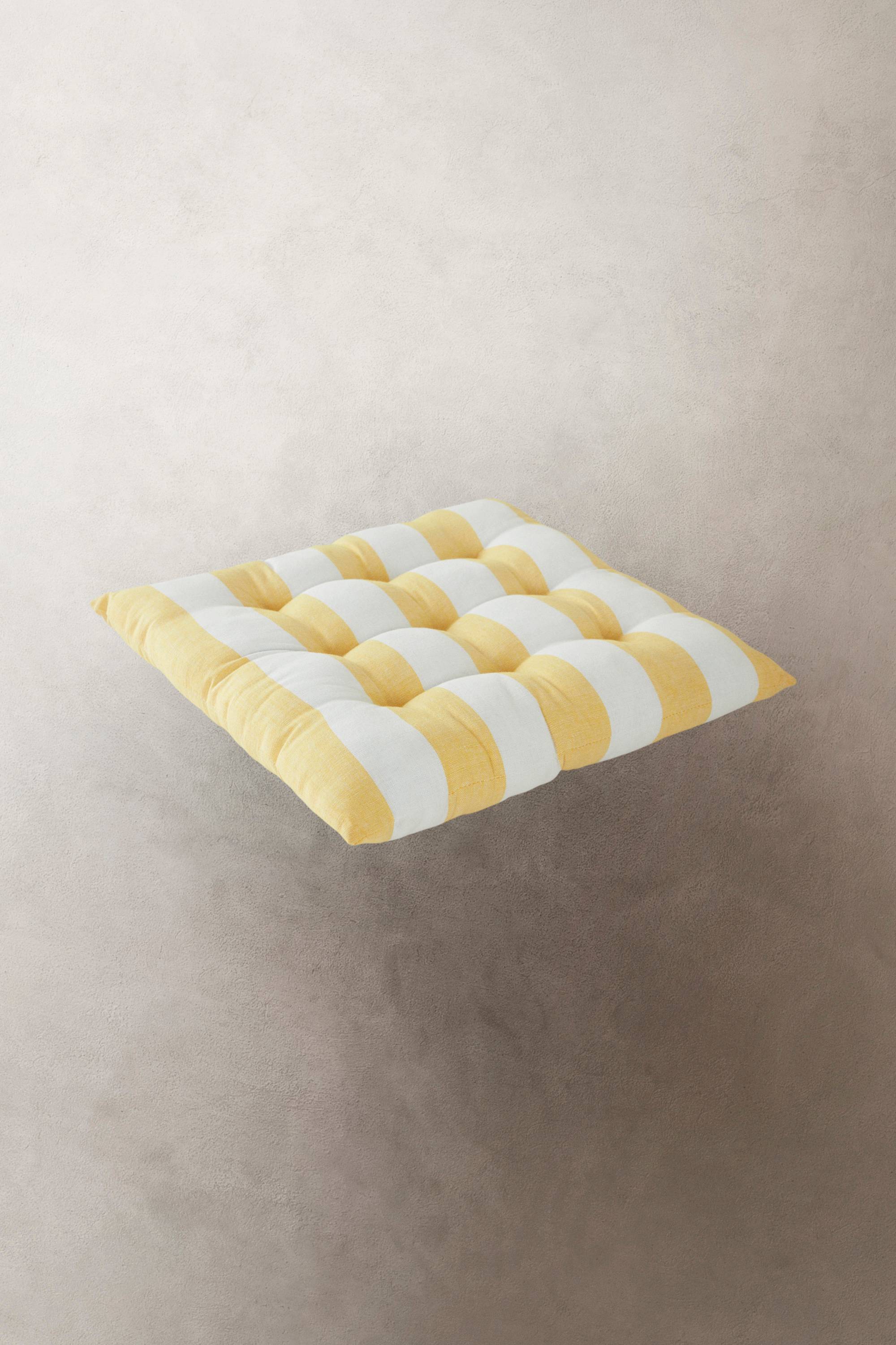 Wygodna poduszka z bawełny w paski lub w jednolitym kolorze, pikowana guzikami.