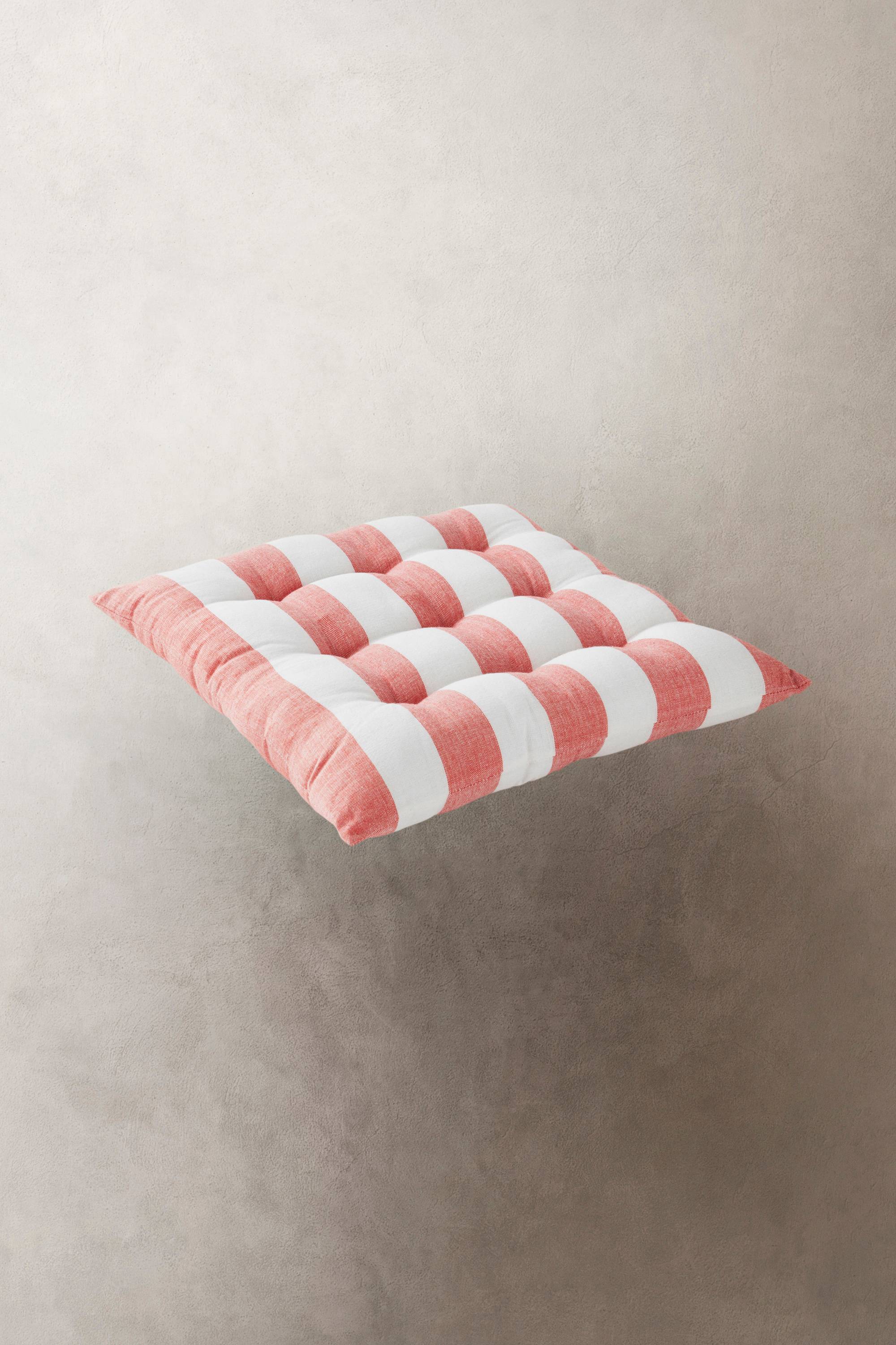 Wygodna poduszka z bawełny w paski lub w jednolitym kolorze, pikowana guzikami.