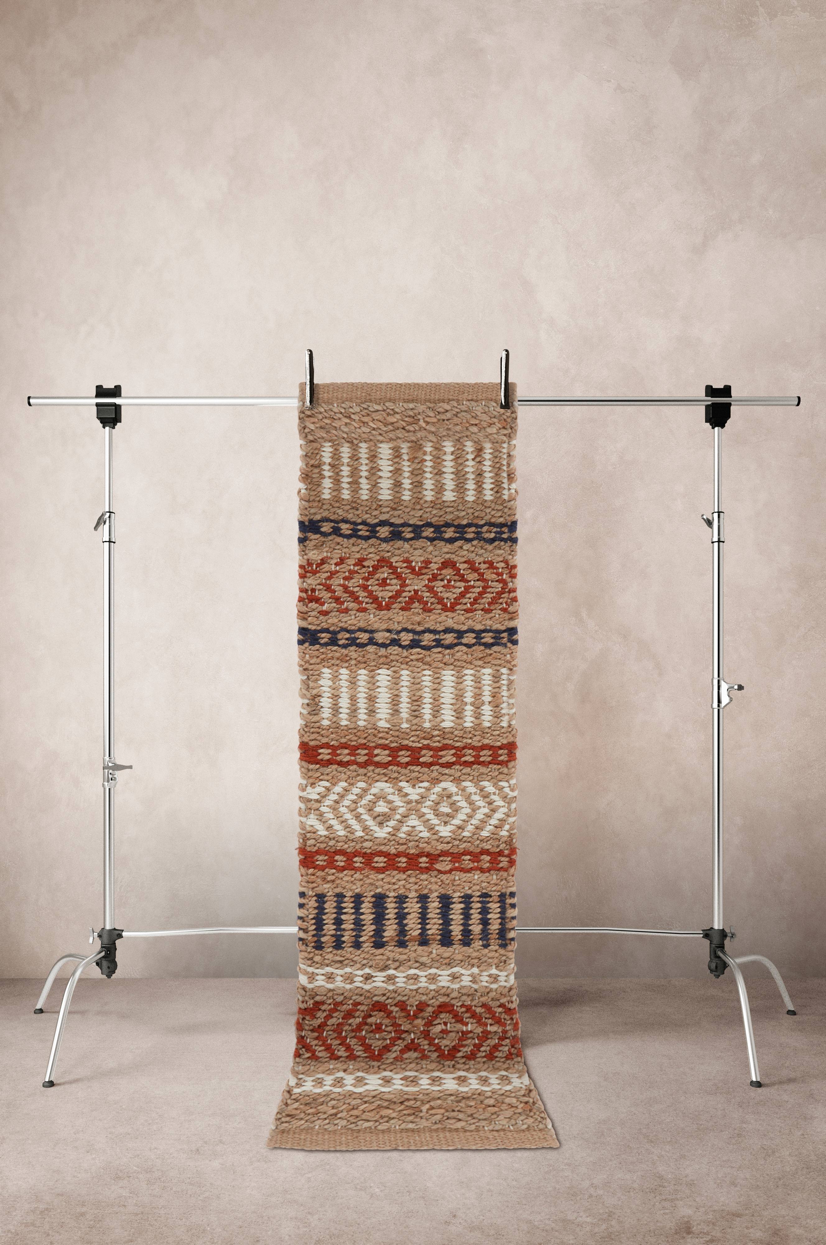 Ręcznie tkany dywan z wysokiej jakości mieszanki juty i bawełny. Dywan odznacza się ślicznymi tkanymi paskami inspirowanymi marokańskim wzornictwem. Gładka lamówka wzdłuż krótszych boków. Juta to rustykalny, naturalny materiał. Ręcznie wykonany dywan to eleganckie rękodzieło, więc każdy egzemplarz jest unikalny. Grubość 0,5 cm. 2260 g/m².