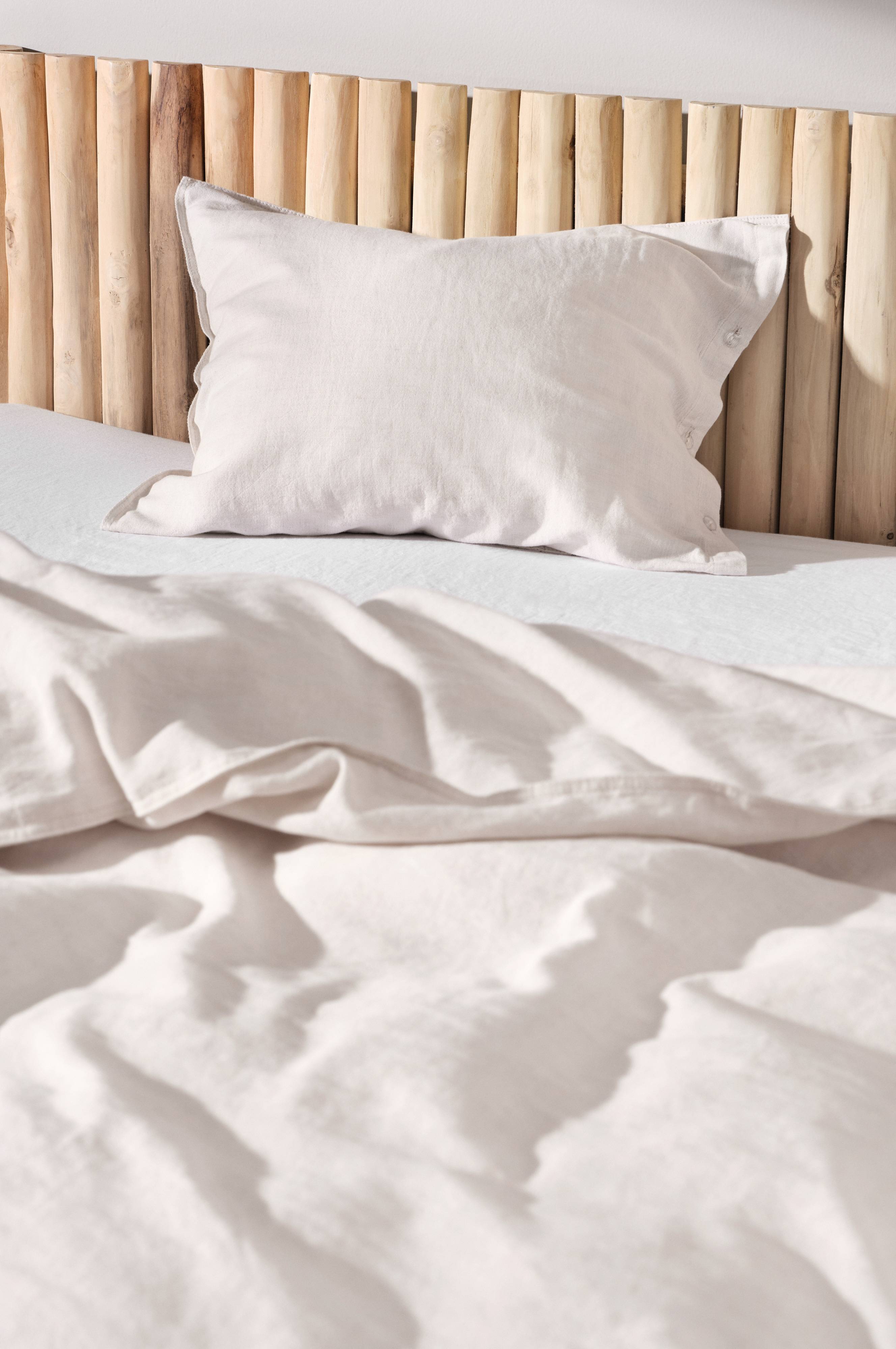 Poszewka z przyjemnej mieszanki bawełny i lnu. Pościel z serii BETLEY powstała z cudownej tkaniny, która łączy w sobie zalety zarówno bawełny, jak i lnu. Poszewka jest obszyta podwójnym szwem, który tworzy wokół niej urocze, małe skrzydło. Zapięcie z małych, plastikowych guzików. Waga 170 g/m². Gęstość splotu materiału wynosi 74 TC. (Gęstość splotu materiału oznacza ilość przeplecionych ze sobą nici, thread count, na cal kwadratowy materiału. Im wyższa gęstość tym lepsza jakość. Wyjątkiem są tkaniny z lnu, które zazwyczaj mają rzadki splot, co przekłada się na wygodę używania.)
