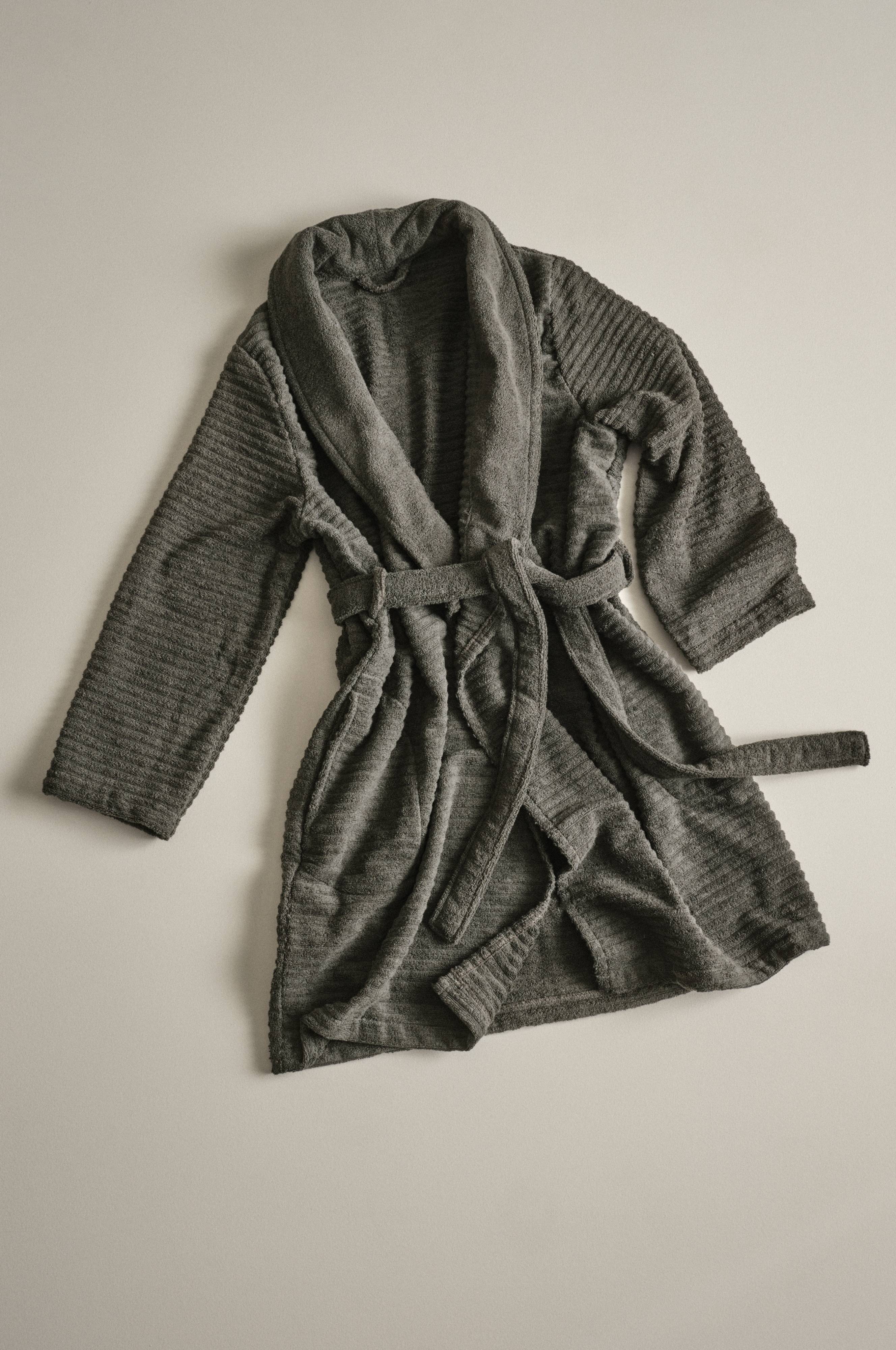 Szlafrok z miękkiej, wytrzymałej bawełny frotte ze wspaniałą fakturą. BETTIE wykonany jest z ekologicznej bawełny barwionej naturalnymi farbami roślinnymi. Barwienie tkanin farbami pochodzenia roślinnego pozwala na osiągnięcie pięknych kolorystycznych kontrastów. Ekologiczna, barwiona roślinnymi farbami tkanina frotte to świadomy wybór, który ma znaczenie.