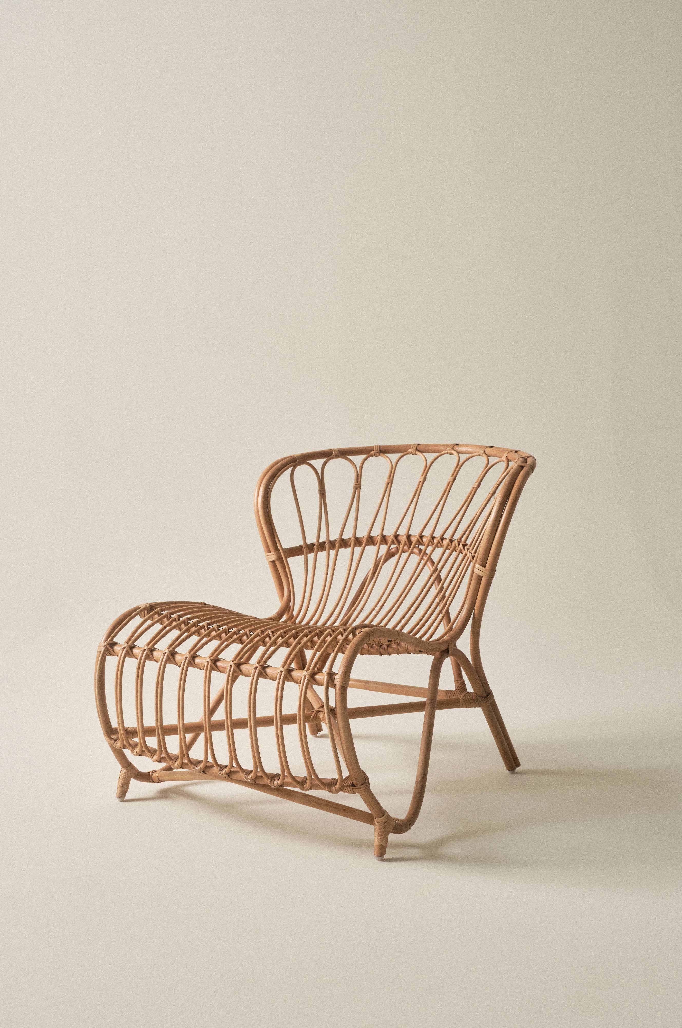 Fotel z rattanu o eleganckich zaokrąglonych kształatach, które uzyskuje się pracując z naturalnym materiałem. Wystawioną na zewnątrz, sofę należy chronić przed deszczem i wilgocią, zalecamy postawić ją w oranżerii lub ogrodzie zimowym. Fotel wykonany jest ręcznie i bardzo dobrze wkomponuje się w wystrój sypialni, salonu lub oranżerii. Poduszka nie jest w zestawie.