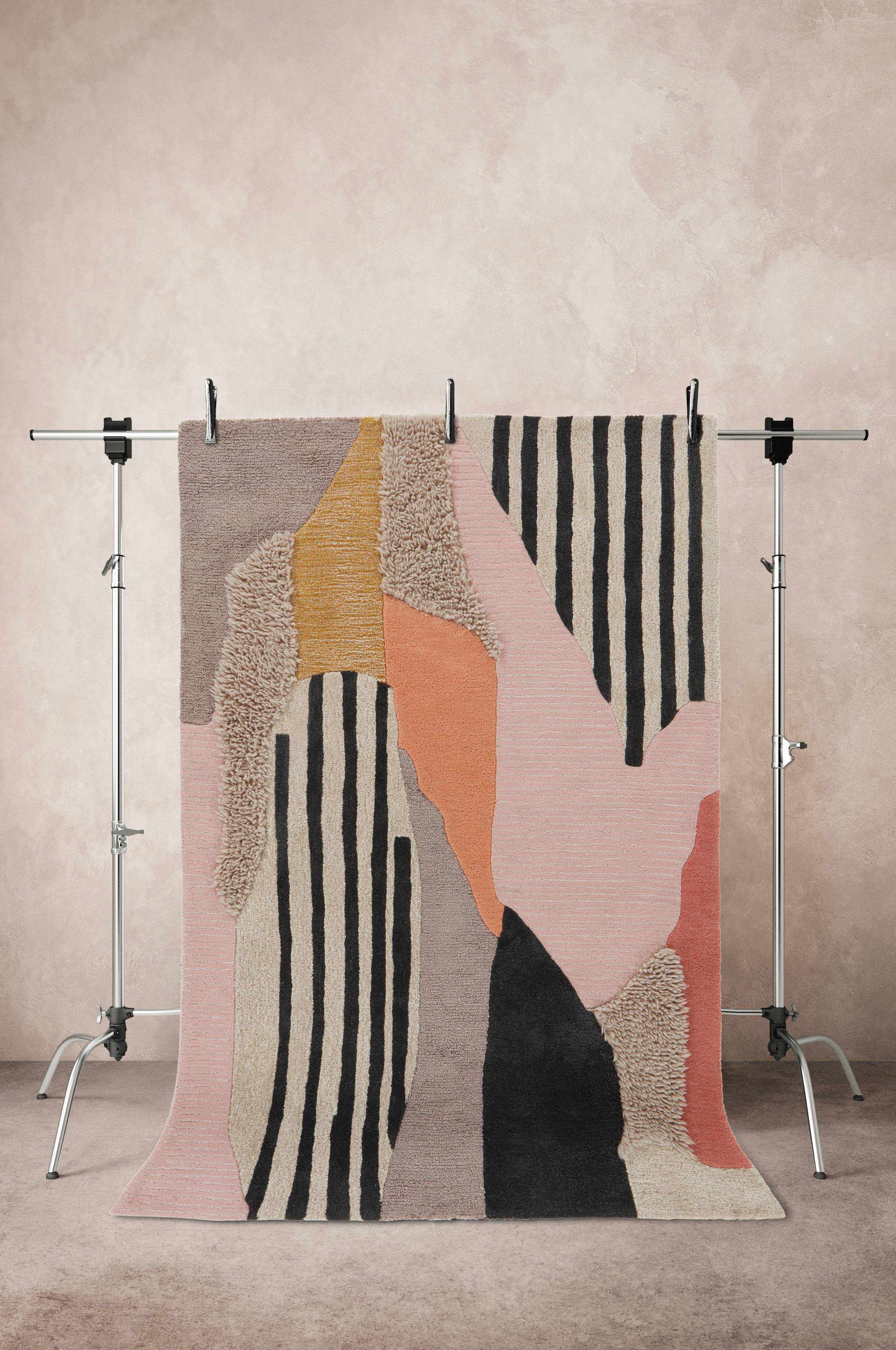 BOBO MINI jest ręcznie tkanym dywanem z oznaczonych certyfikatami wełny i wiskozy pochodzącymi z recyklingu, unikalnym dziełem sztuki o wysokiej trwałości i połysku. Dywan zdobi intrygujący wzór, który powstał z połączenia kolorowej przędzy, technik tkackich i różnej długości włosia. Dywan wełniany jest naturalnie ciepły, więc przyjemnie jest siedzieć i bawić się na nim. Długość włosia w pętelkach 0,6-0,8, włosie przycięte 0,8-1 cm, włosie długie 1,4-1,8 cm. 3800-4000 g/m².