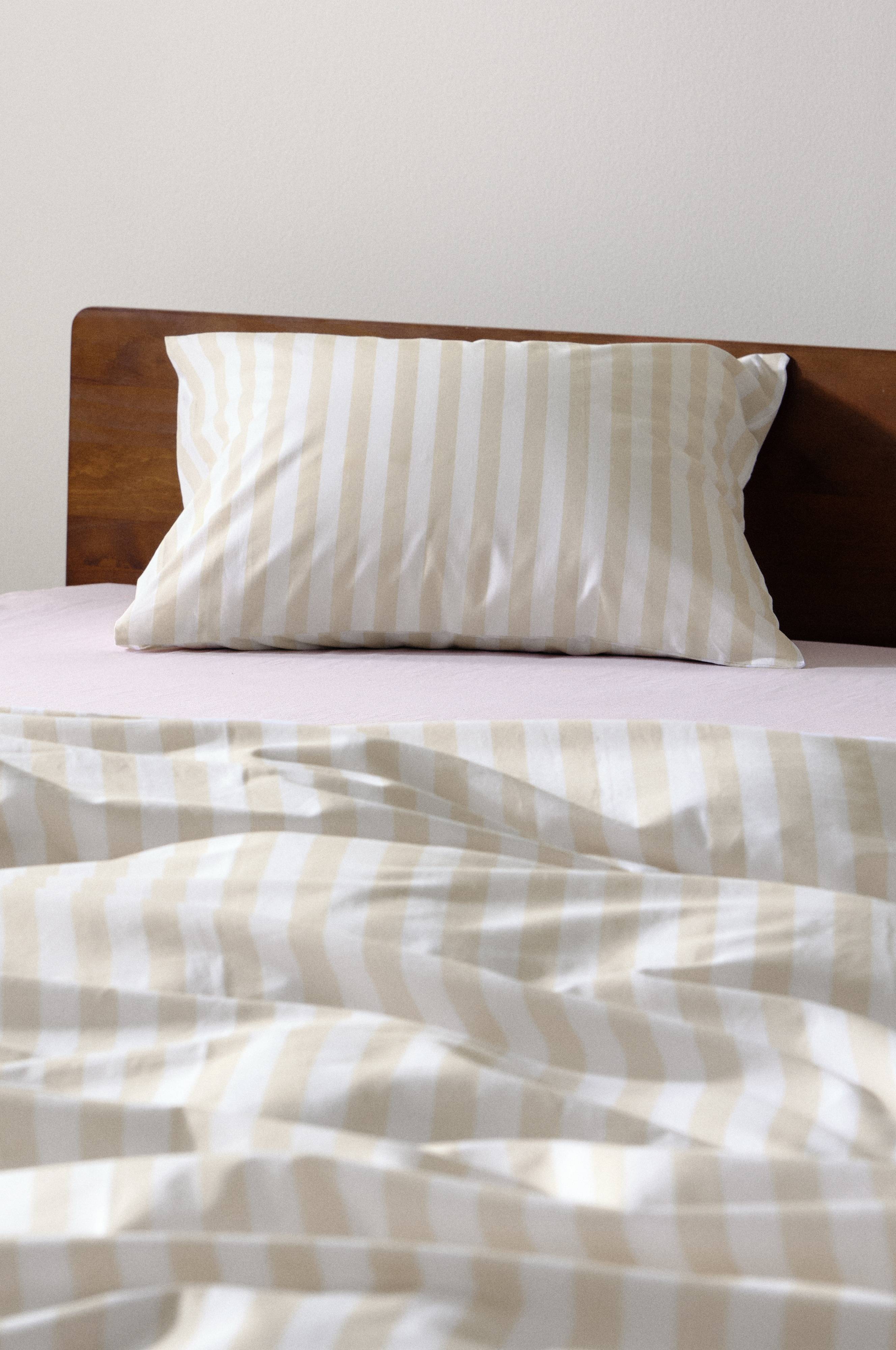 Poszewka na poduszkę wykonana z ekologicznej bawełny ze wzorem wąskich pasków. Klasyczne paski będą pasować zarówno młodszym jak i starszym. Tkanina jest przyjemna w dotyku, ponieważ bawełna jest chłodna i przyjemna dla skóry, dlatego chęć wślizgnięcia się do świeżo pościelonego łóżka jest nieodparta. Wzór pasków został nadrukowany w czystych, radosnych kolorach przełamanych co drugi pasek kolorem białym. Gęstość splotu materiału wynosi 144 TC. (Gęstość splotu materiału oznacza ilość przeplecionych ze sobą nici, thread count, na cal kwadratowy materiału. Im wyższa gęstość tym lepsza jakość.)