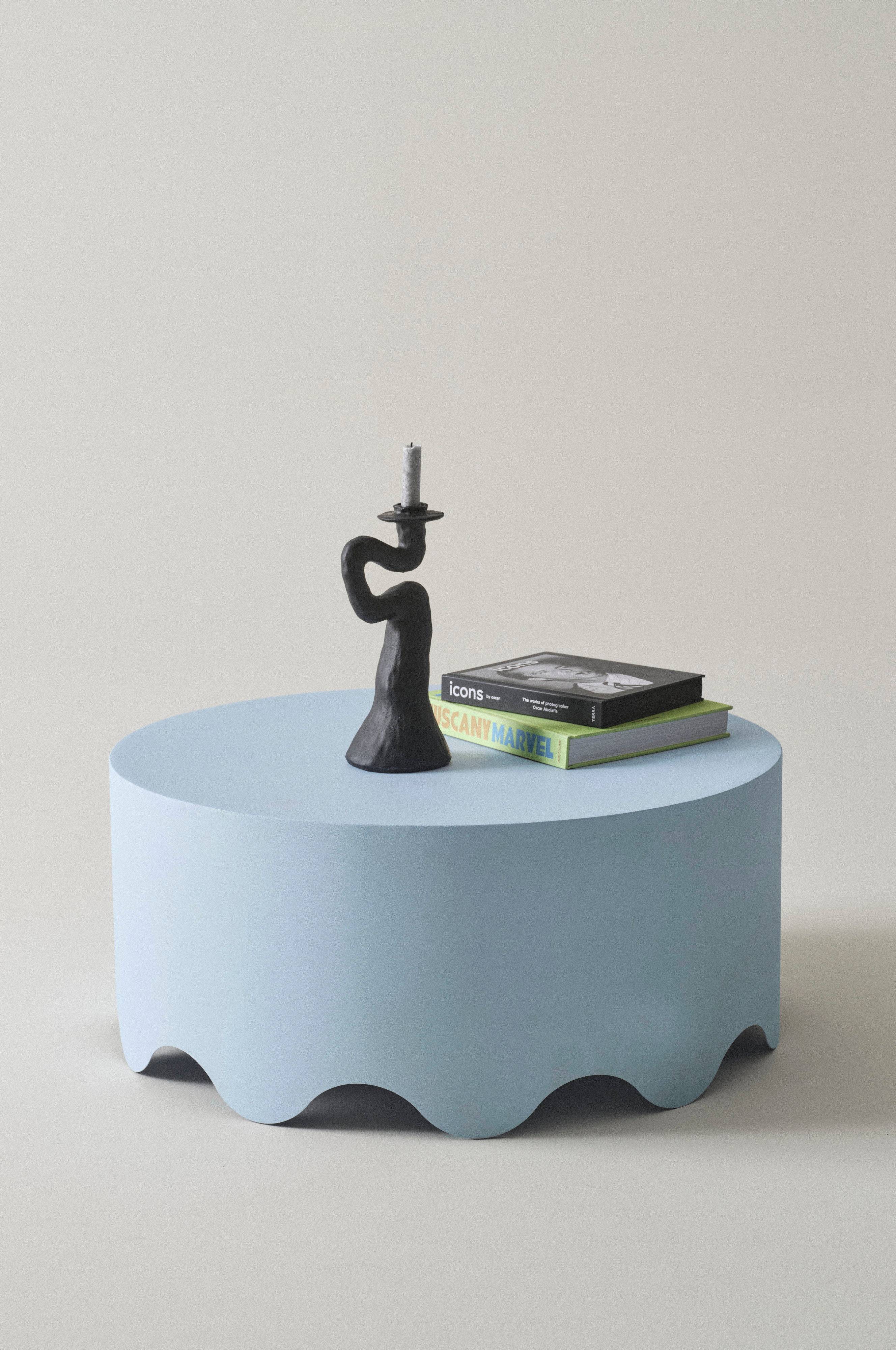 Okrągły stolik kawowy z żelaza o pięknej, falistej dolnej krawędzi. Lakierowanie metodą proszkową zapewniło powierzchni matowe wykończenie. Zabawny stolik wniesie w umeblowanie Twojego wnętrza nową energię. Jeżeli Twoja podłoga jest podatna na uszkodzenia, zalecamy użycie podkładek pod meble lub innej formy ochrony w miejscach, w których meble stykają się z podłogą.