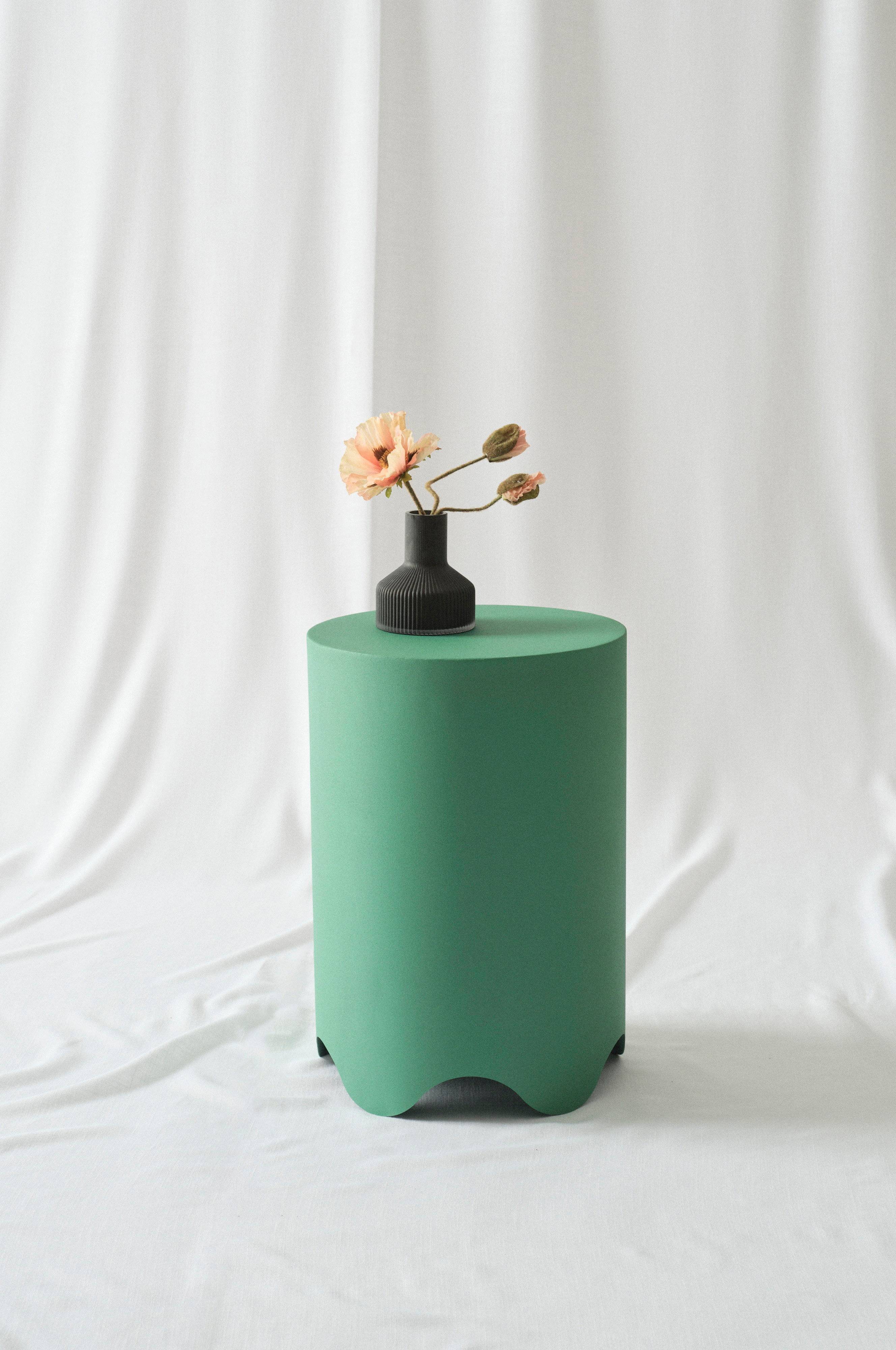 Okrągły stolik z żelaza o pięknej, falistej dolnej krawędzi. Lakierowanie metodą proszkową zapewniło powierzchni matowe wykończenie. Zabawny stolik wniesie w umeblowanie Twojego wnętrza nową energię.