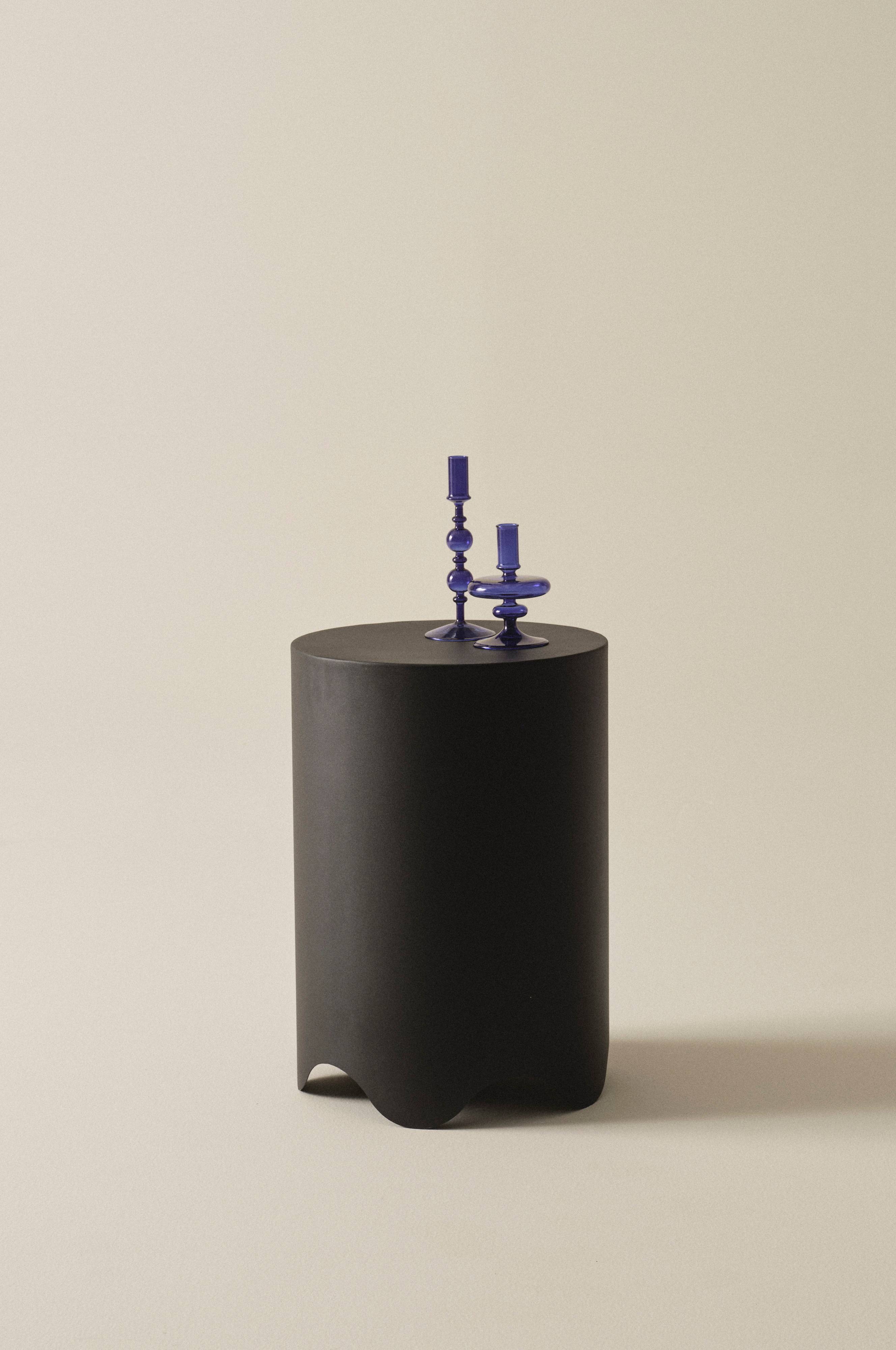 Okrągły stolik z żelaza o pięknej, falistej dolnej krawędzi. Lakierowanie metodą proszkową zapewniło powierzchni matowe wykończenie. Zabawny stolik wniesie w umeblowanie Twojego wnętrza nową energię.