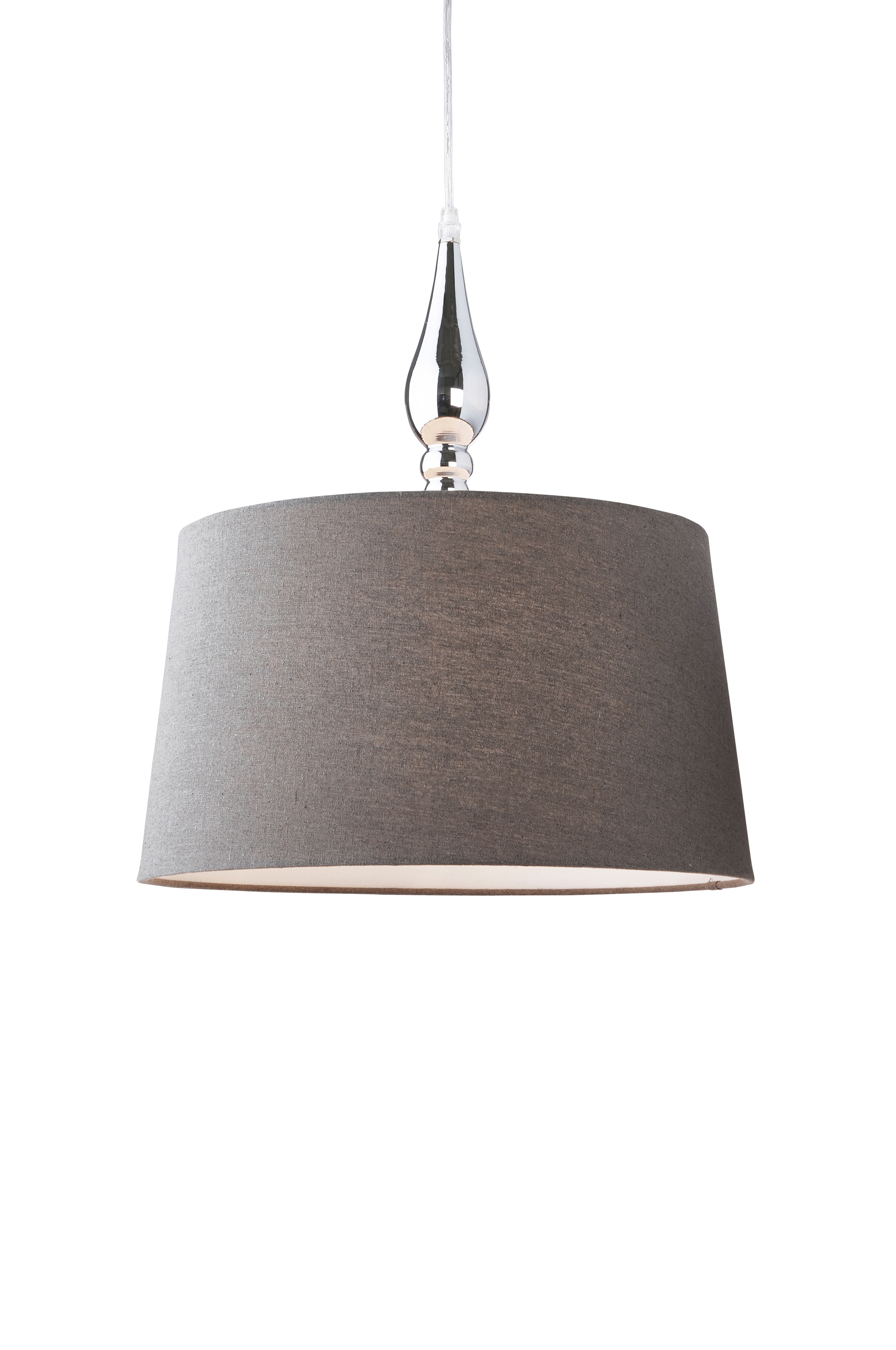 Stylowa i nowoczesna lampa, która wyróżnia się oszczędnym kształtem i spokojnymi kolorami. Lampa wykonana jest z tkaniny w połączeniu z gwintem z chromu lub mosiądzu, co zapewnia ciekawe zestawienie materiałów. Przewód 75 cm. Wtyk nie wchodzi w skład zestawu ze względu na nowe regulacje unijne. Produkt o nazwie ROOF EARTH, wtyk sufitowy, dostępny jest osobno.