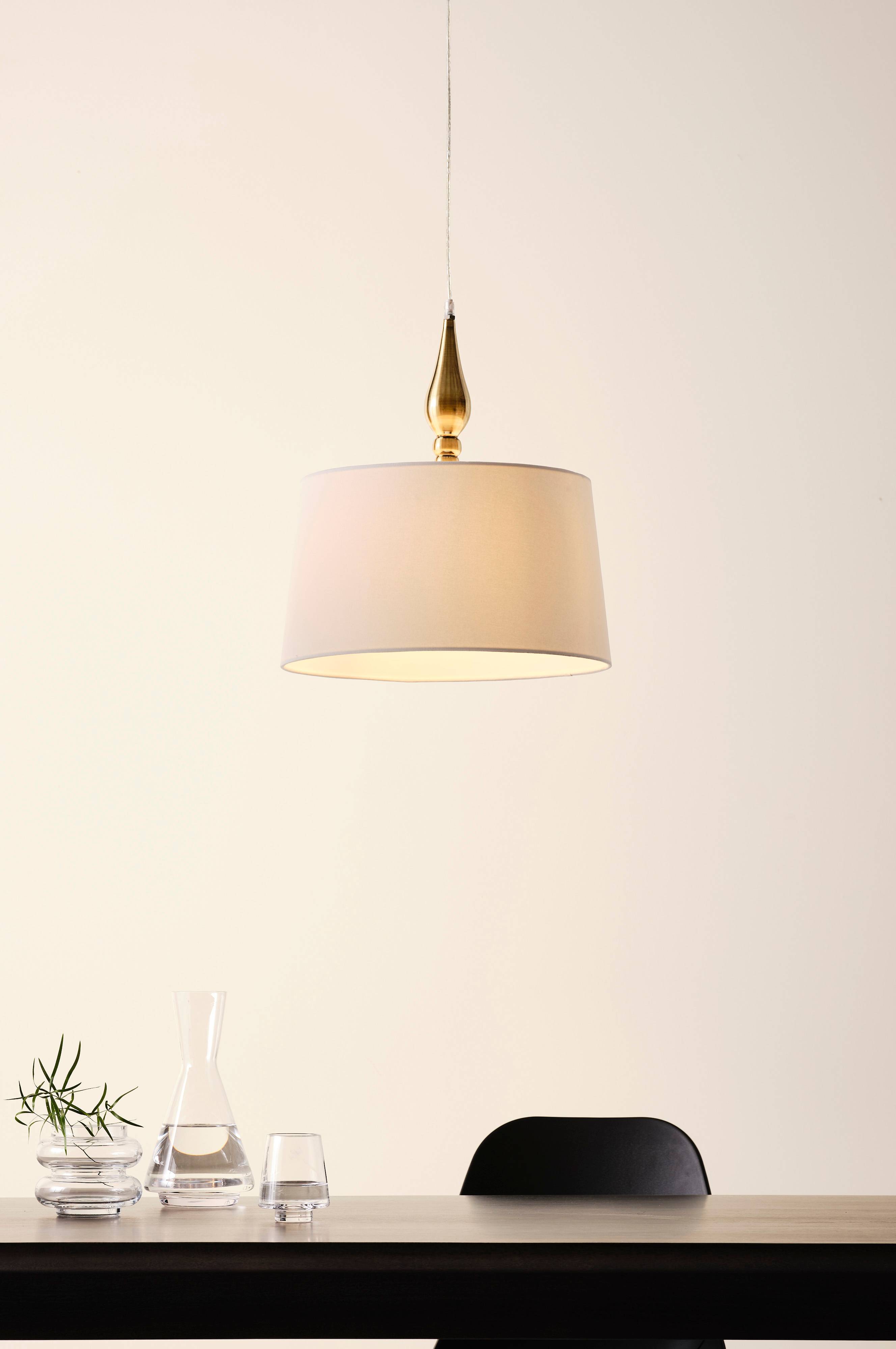 Stylowa i nowoczesna lampa, która wyróżnia się oszczędnym kształtem i spokojnymi kolorami. Lampa wykonana jest z tkaniny w połączeniu z gwintem z chromu lub mosiądzu, co zapewnia ciekawe zestawienie materiałów. Przewód 75 cm. Wtyk nie wchodzi w skład zestawu ze względu na nowe regulacje unijne. Produkt o nazwie ROOF EARTH, wtyk sufitowy, dostępny jest osobno.