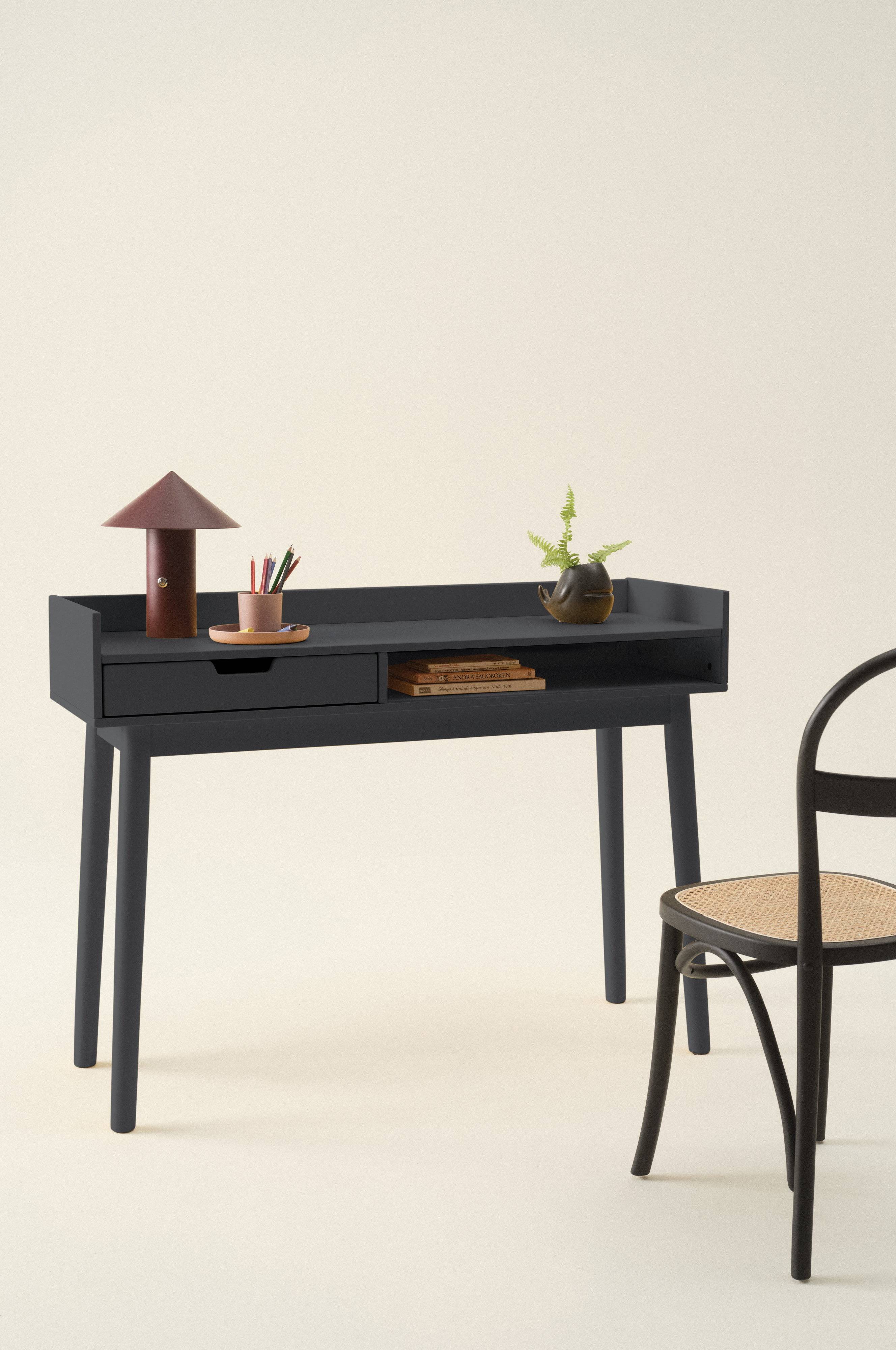 Biurko CAMPO zostało wykonane z posiadającej certyfikat FSC płyty MDF o malowanej powierzchni. Biurko jest otoczone niską burtą, dzięki której ołówki, podręczniki oraz zabawki pozostają na blacie i nie spadają na podłogę. Pod blatem znajduje się przestrzeń do przechowywania z szufladą i otwartą półką na przydatne drobiazgi takie jak na przykład piórnik, blok rysunkowy czy klawiatura. Szuflada ma uchwyt do otwierania w postaci wyciętego otworu, a dodatkowo wyposażono ją w ogranicznik, który zapobiega wypadnięciu gdy szuflada jest otwarta. Okrągłe nogi są ustawione pod niewielkim kątem. Wymaga częściowego montażu. Do produktu dołączona jest instrukcja.