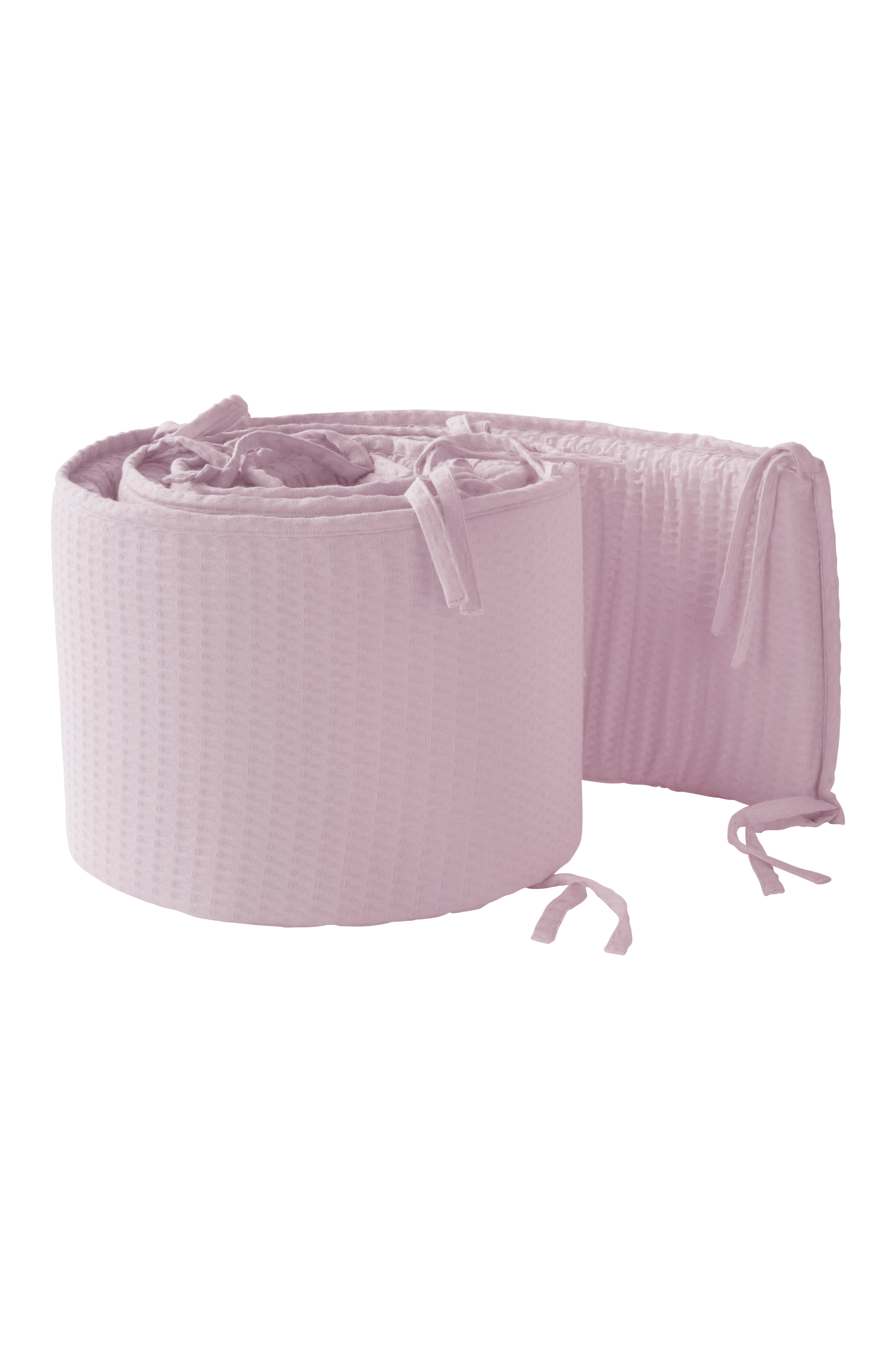 Ochraniacz do łóżeczka z powierzchnią zewnętrzną wykonaną z miękkiej, pięknej karbowanej tkaniny z ekologicznej bawełny. Tkanina poddana została praniu przemysłowemu, co oznacza, że przed uszyciem produktu, karbowany materiał został wyprany, dzięki czemu zyskał na miękkości i wyglądzie. Wypełnienie z poliestru z miękkim jądrem z pianki. Ochraniacz sprawia, że łóżeczko jest przyjemne i bardziej przytulne, a jednocześnie chroni dziecko przed uderzeniem się o szczebelki podczas snu. Mocowanie ochraniacza za pomocą troczków. Materiał wierzchni można zdejmować dzięki zamkowi błyskawicznemu i prać. Ochraniacz pasuje do łóżeczka o wymiarach 60x120 cm. Gramatura tkaniny 230 g/m².