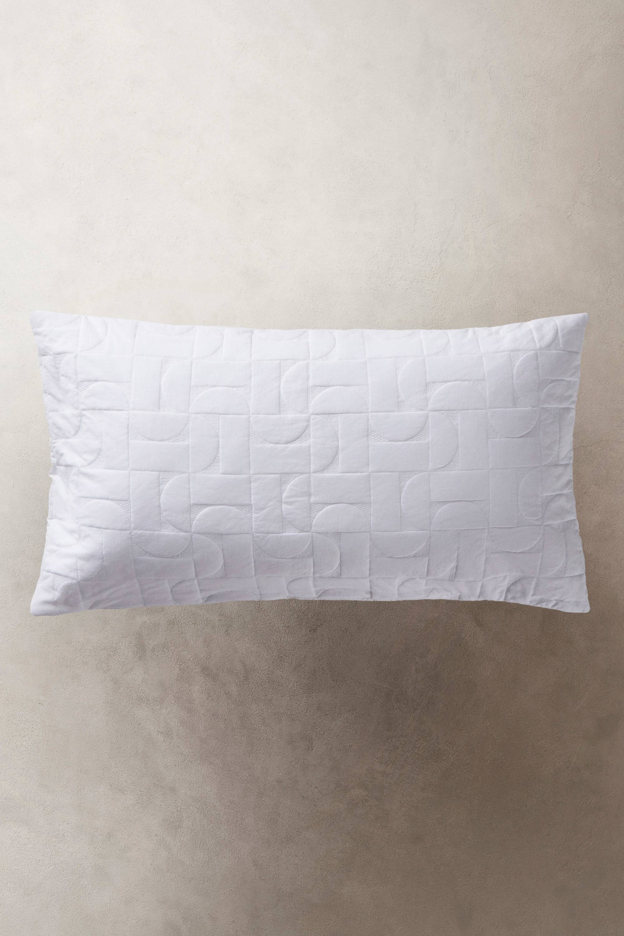 Poszewka dekoracyjna z miękkiego, pranego przemysłowo bawełnianego jerseyu. Pranie przemysłowe oznacza, że poszewka została wyprana zaraz po uszyciu. Piękny wzór uzyskany dzięki pikowaniu. Poszewka jest delikatnie watowana, a jej tył wykonany jest z tkanej bawełny. Zamek błyskawiczny w spodniej krawędzi.