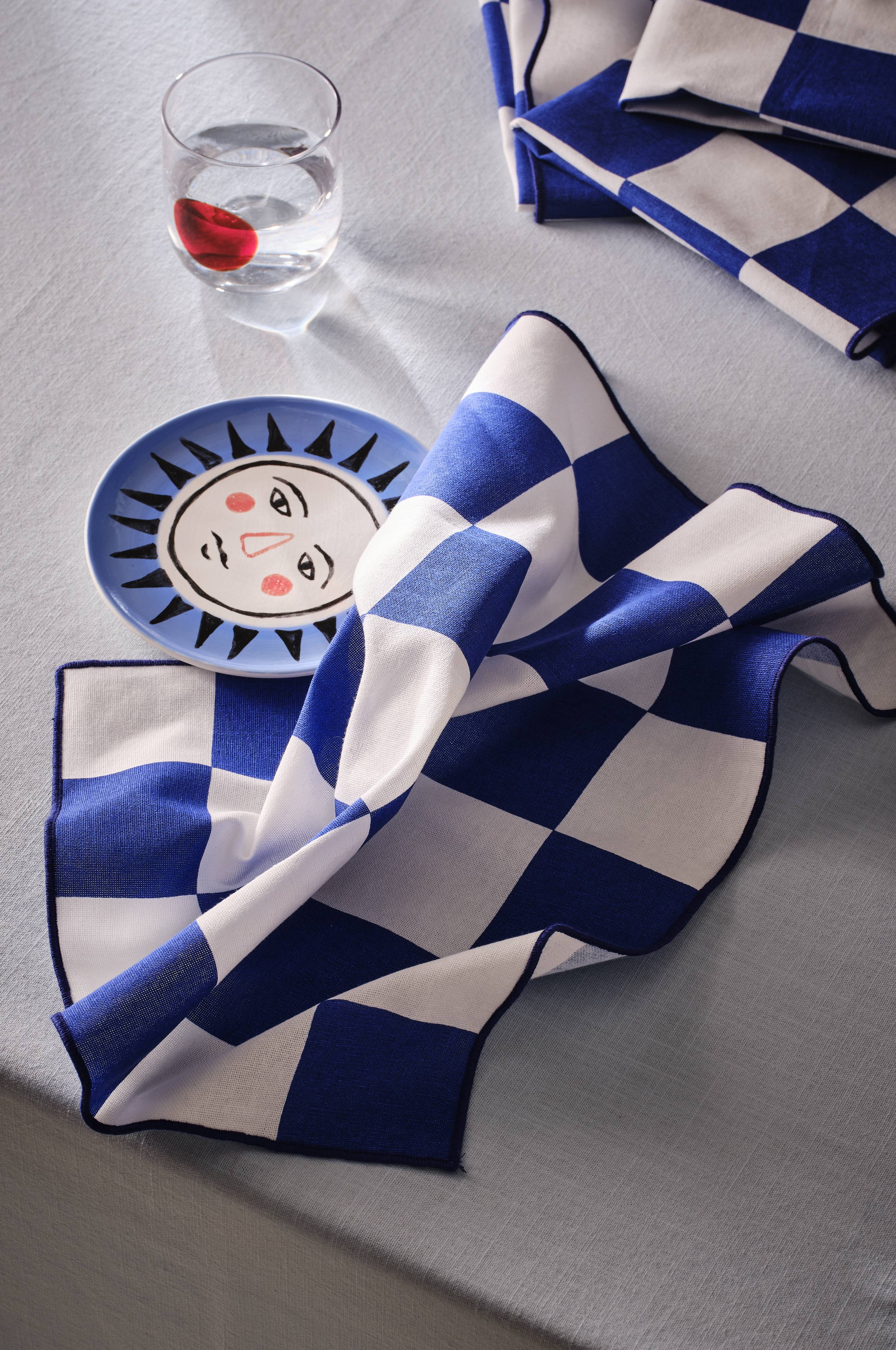 Modny wzór serwetek w kratkę doda uroku każdej jadalni. Zestaw czterech bawełnianych serwetek posiada szwy owerlokowe dla dodania stylu.