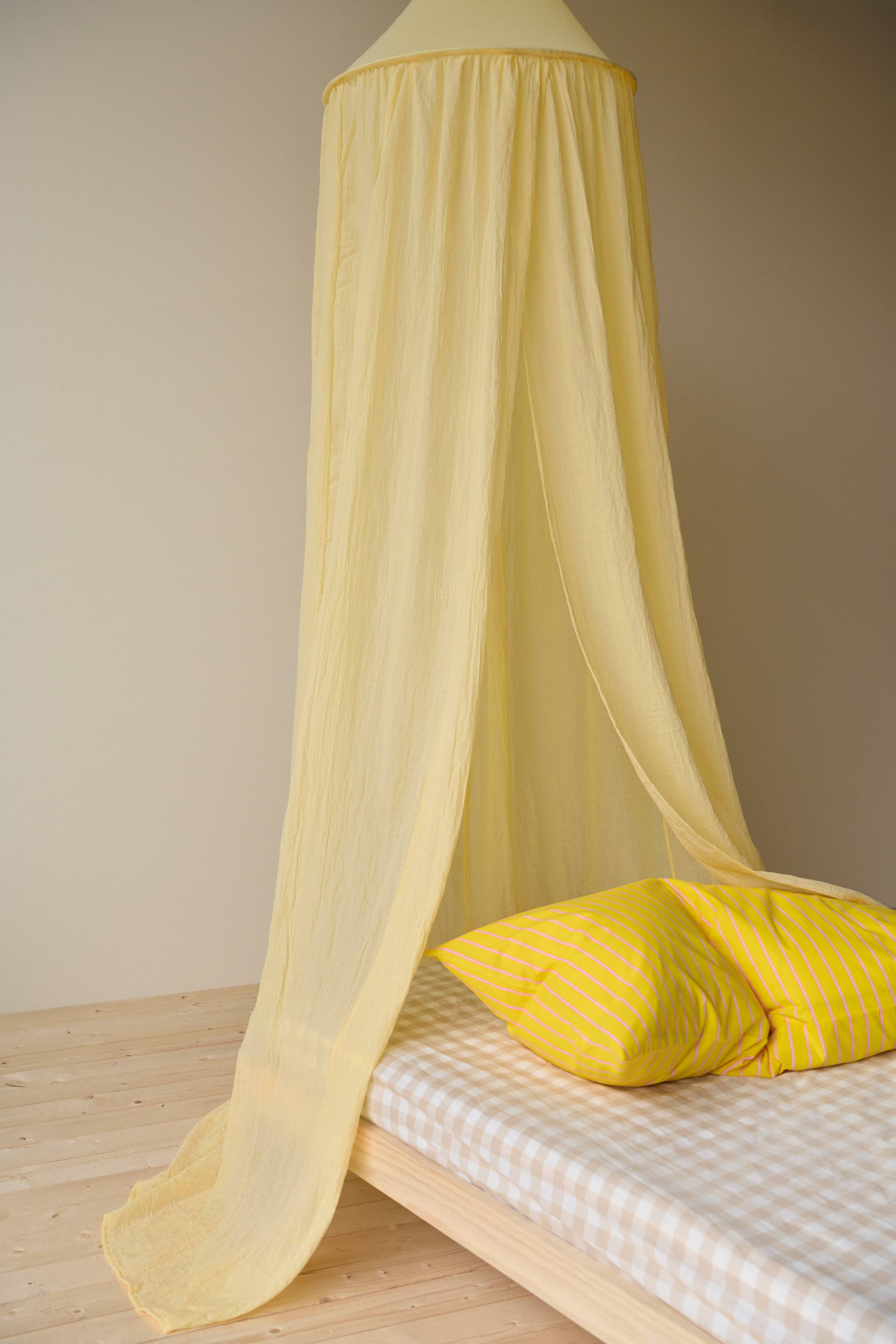 Baldachim z tkaniny, który zapewnia przyjemny spadek. Ten baldachim jest otwarty zarówno z przodu, jak i z tyłu, co jest zaletą, jeśli chcesz umieścić lampkę nocną na ścianie za łóżkiem. Zamontuj baldachim w pokoju dziecięcym, aby stworzyć przytulną atmosferę nad łóżkiem dziecka. Jednokolorowy baldachim łóżka jest dostępny w kilku kolorach, dzięki czemu można go łatwo dopasować.