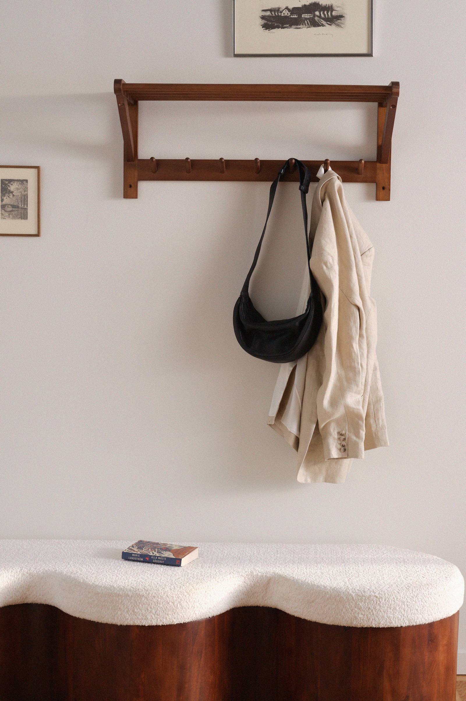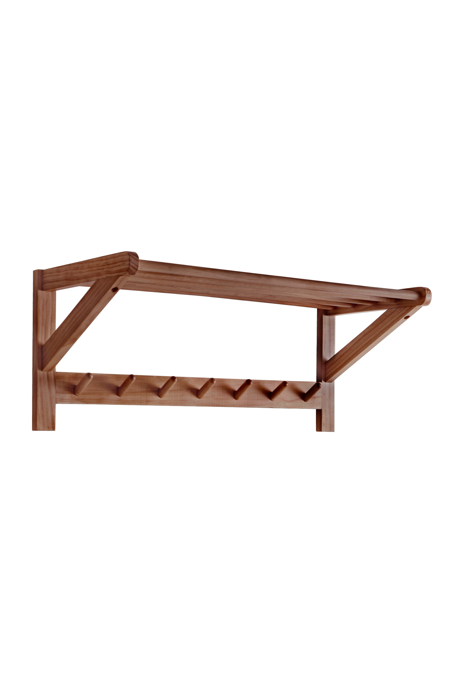 Półka na kapelusze COLE została wykonana z bielonego drewna sosnowego oznaczonego certyfikatem FSC. COLE posiada półkę, drążek na wieszaki oraz siedem prostych haczyków. Haczyki są od góry karbowane, więc ubrania i torebki wiszą pewnie i nie ześlizgują się na ziemię. Z tyłu górnej części znajdują się ukryte otwory do zawieszenia na ścianie. Wymaga częściowego montażu. Do produktu dołączona jest instrukcja. Wieszaki sprzedawane osobno.