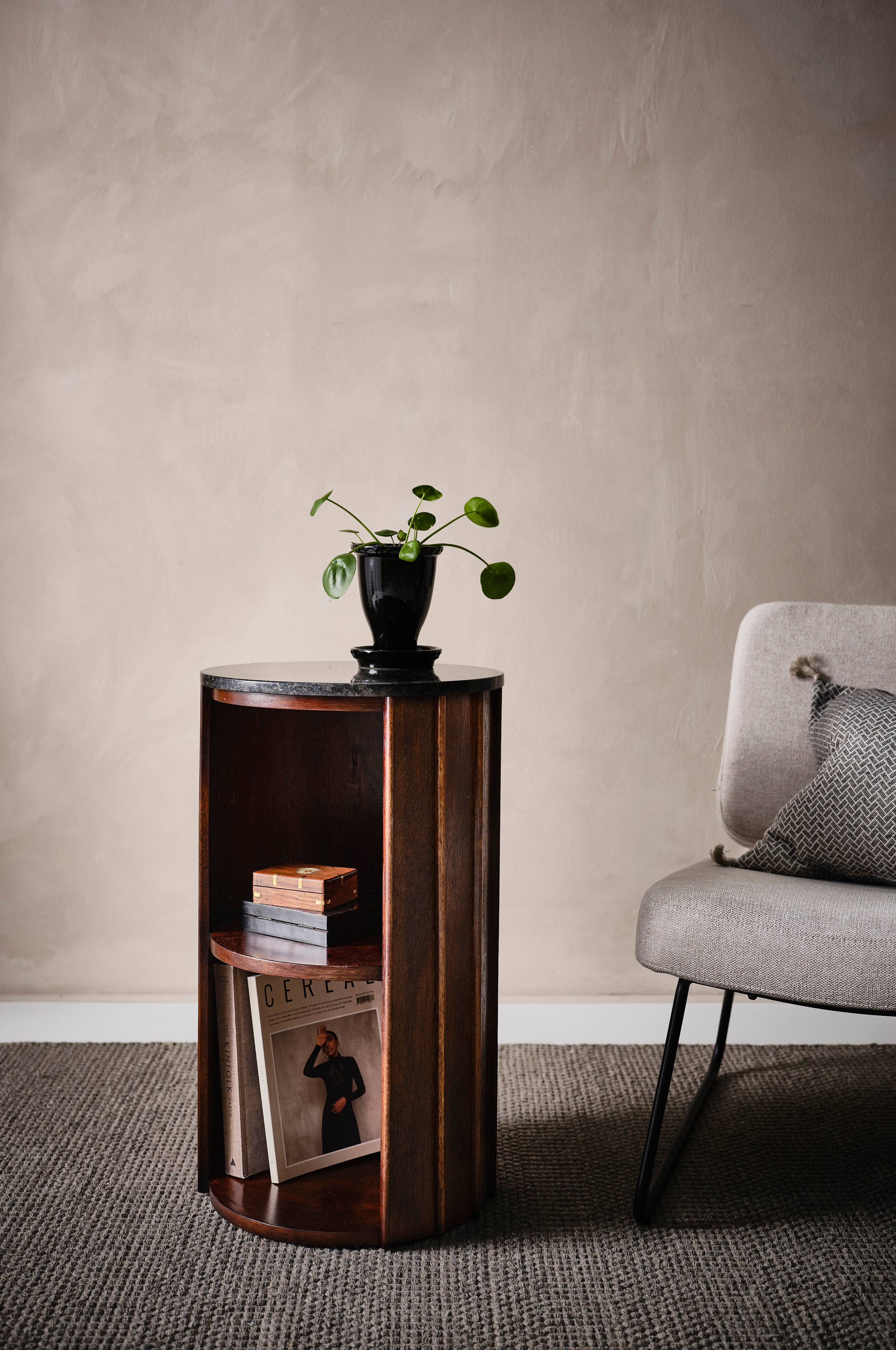 Stolik z ramą z drewna mango i blatem z granitu. Praktyczny i stylowy stolik, który oferuje wiele możliwości przechowywania.