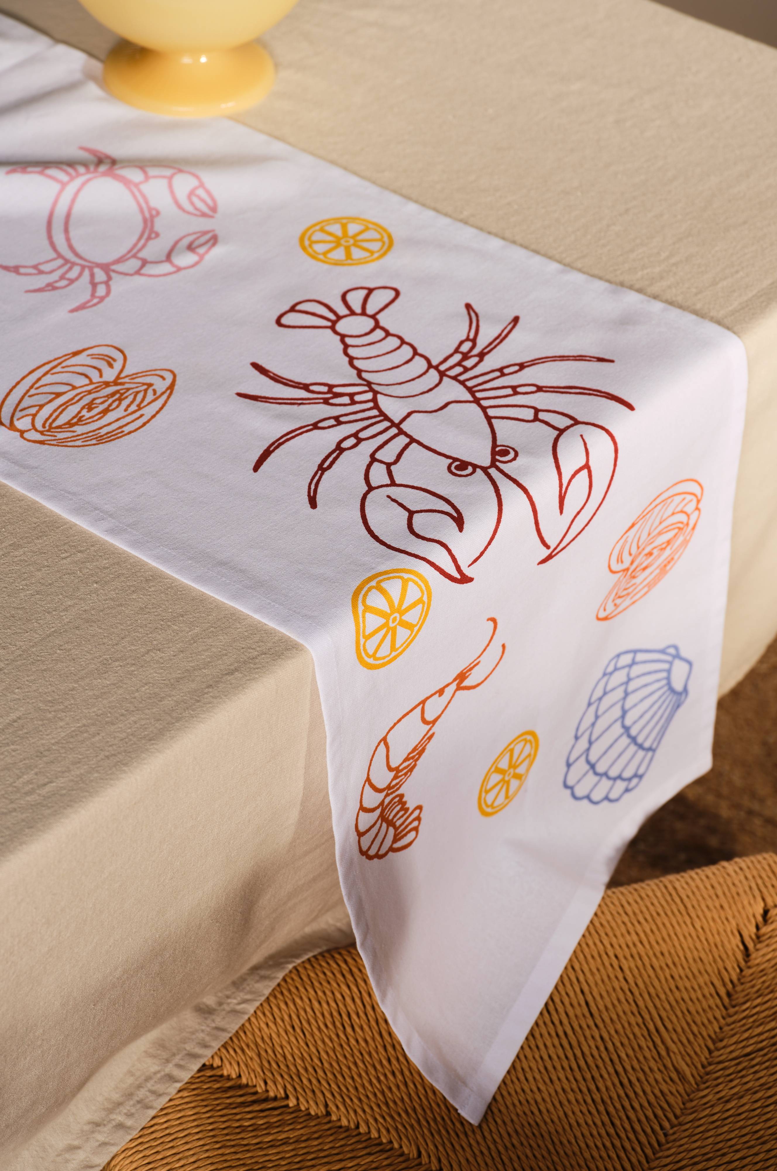 Bieżnik CRAY CRAY doda zabawnego akcentu do Twojego stołu w jadalni dzięki żywym rakom i morskim motywom. Idealny na spotkania, które obejmują nadmorski urok, ten bieżnik jest częścią rodziny CRAY CRAY, oferującej pasujące elementy dla spójnego wyglądu. Idealny dla tych, którzy chcą wnieść poczucie radości inspirowanej morzem do wystroju swojego domu, przekształcając każdy posiłek w nadmorską ucieczkę.