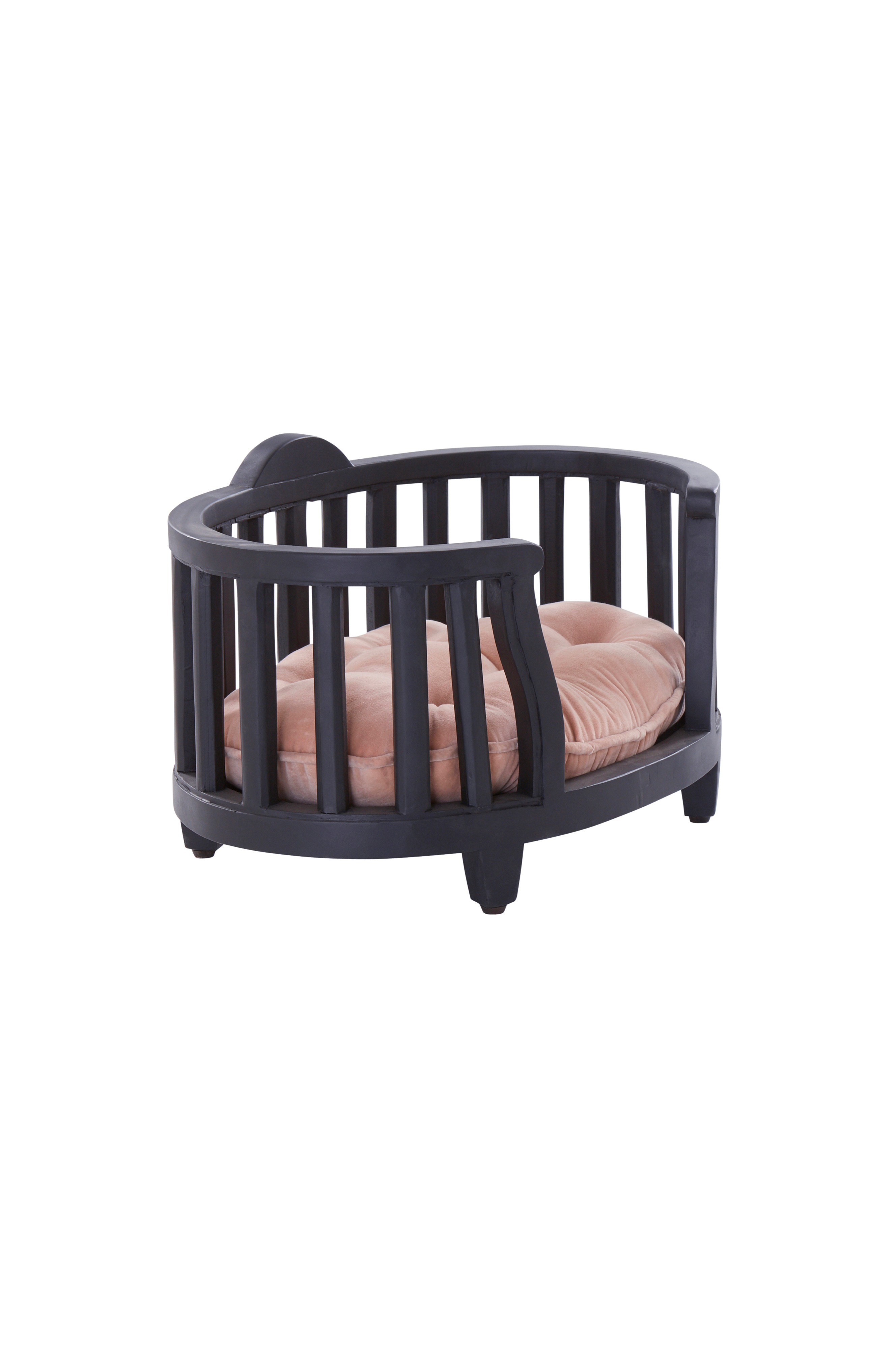 Owalne posłanie dla zwierząt z ramą z litego drewna mango i z miękko wyściełaną, pokrytą aksamitem poduszką. Twój przyjaciel śpi na grubej, miękkiej poduszce z pikowaniem z guzików. Posłanie nadaje się dla małych psów, kotów, a nawet, czemu nie, dla królików.