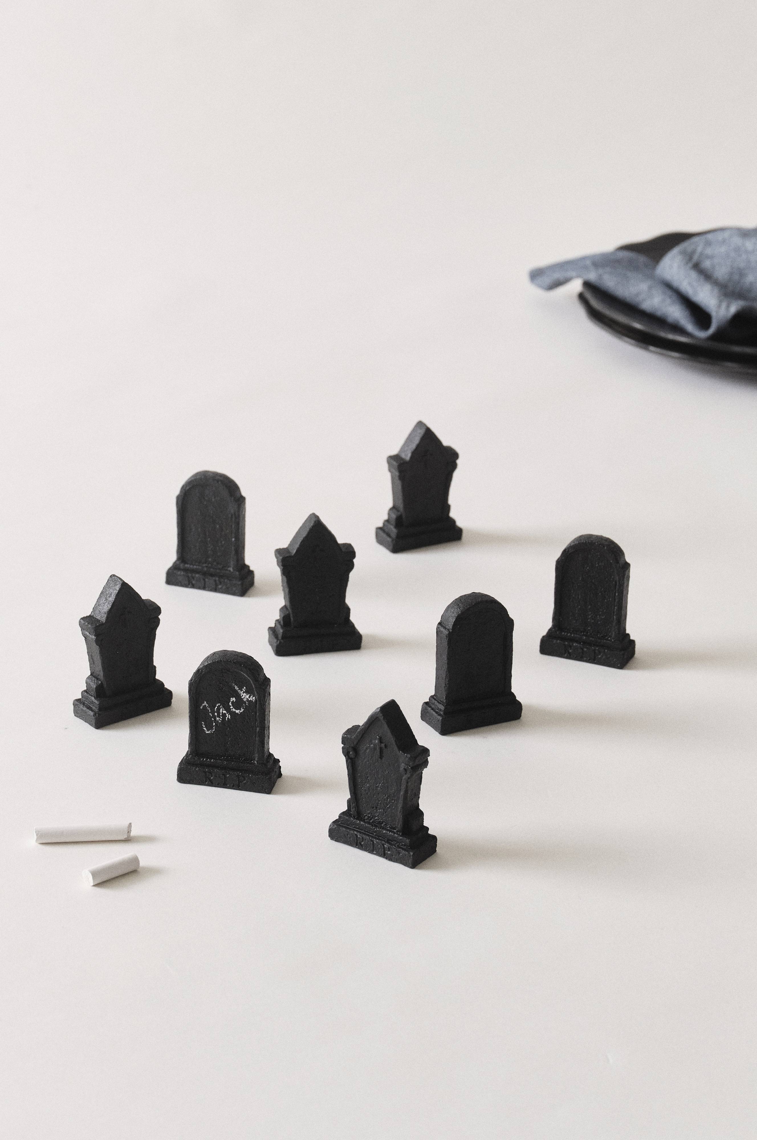 8 uchwytów na winietki wykonanych z porcelany dolomitowej. Uchwyty przypominają nagrobki w dwóch różnych wzorach. Każdy zestaw zawiera po cztery sztuki każdego wzoru. Winietki można opierać o uchwyty lub wykorzystywać uchwyty jako przyciski do papieru, dzięki którym winietki pozostaną na miejscu. CULLEN to ostatni szlif na stole nakrytym do halloweenowego przyjęcia.