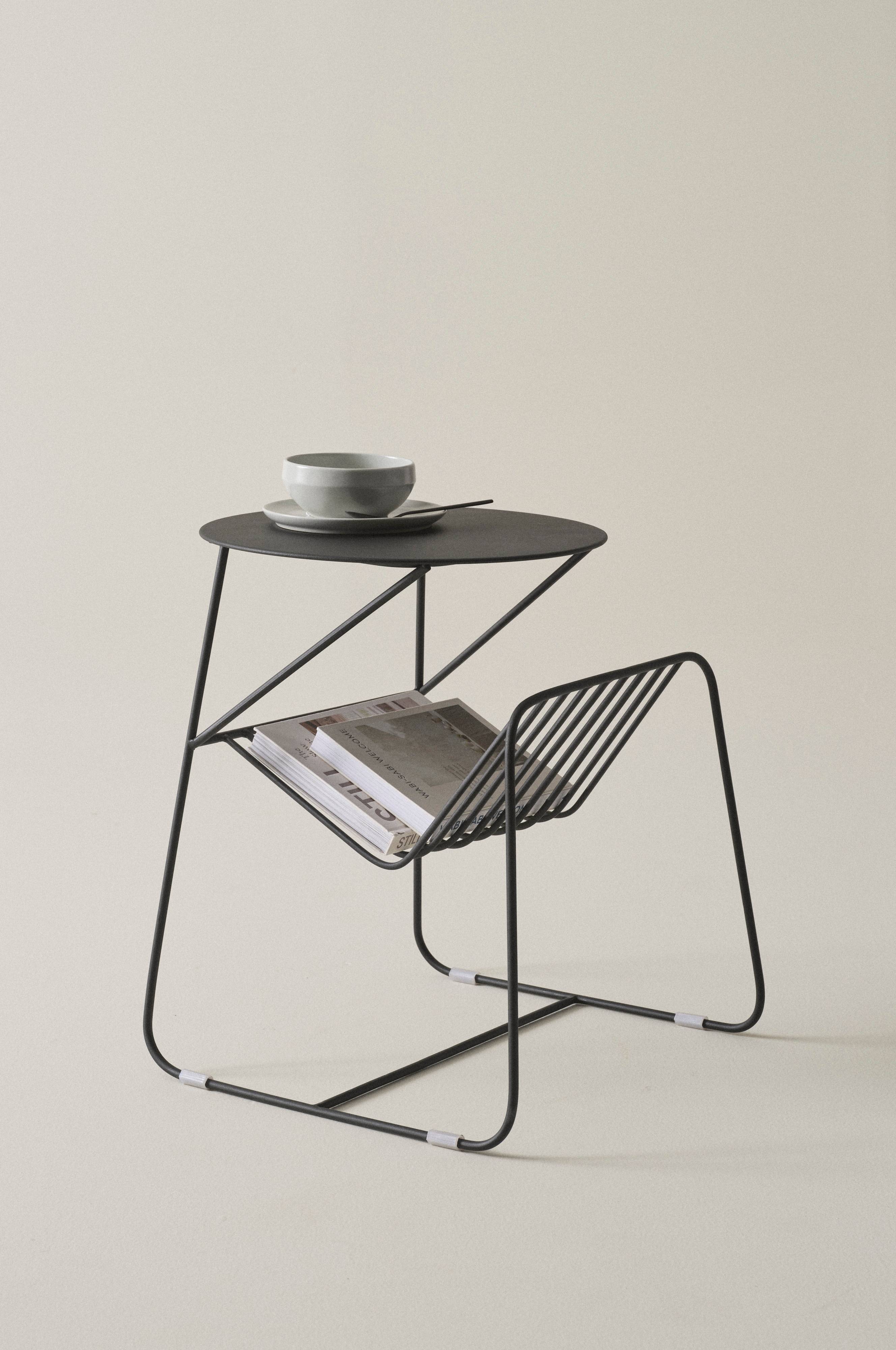 DALLY to żelazny, lakierowany proszkowo stolik, któremu blasku dodaje kosz na czasopisma. Stolik łączy w sobie elementy retro i nowoczesności w równych proporcjach. DALLY pełni dwie funkcje i idealnie pasuje do mniejszych wnętrz, w których dostępna powierzchnia jest ograniczona.