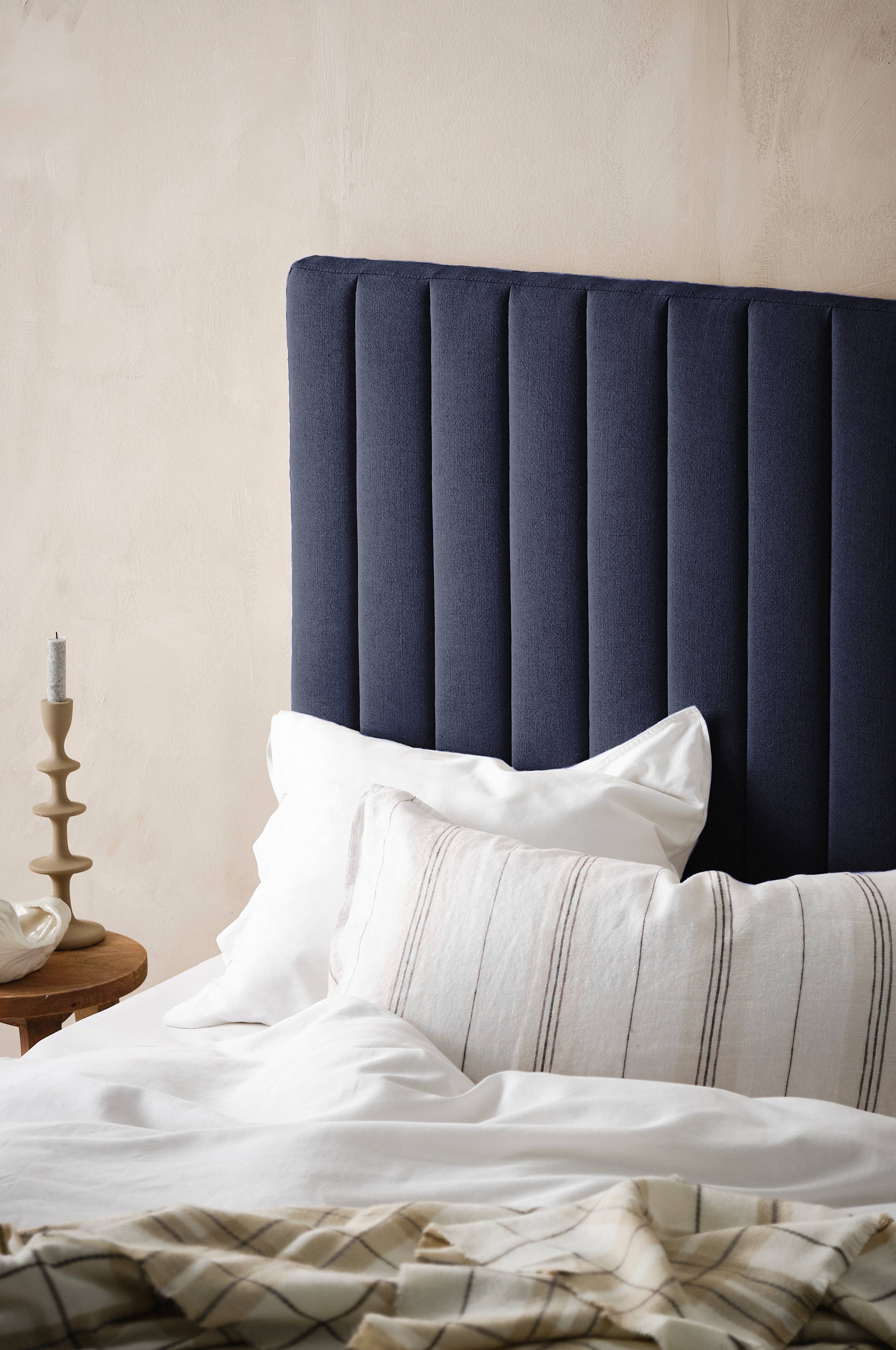 Odśwież swoją sypialnię i nadaj jej luksusowego charakteru z DERBY, wolnostojącym, miękko wyściełanym zagłówkiem obitym miękką tkaniną z mieszanki lnu z pionowym pikowaniem. Mocowanie do ściany w zestawie.