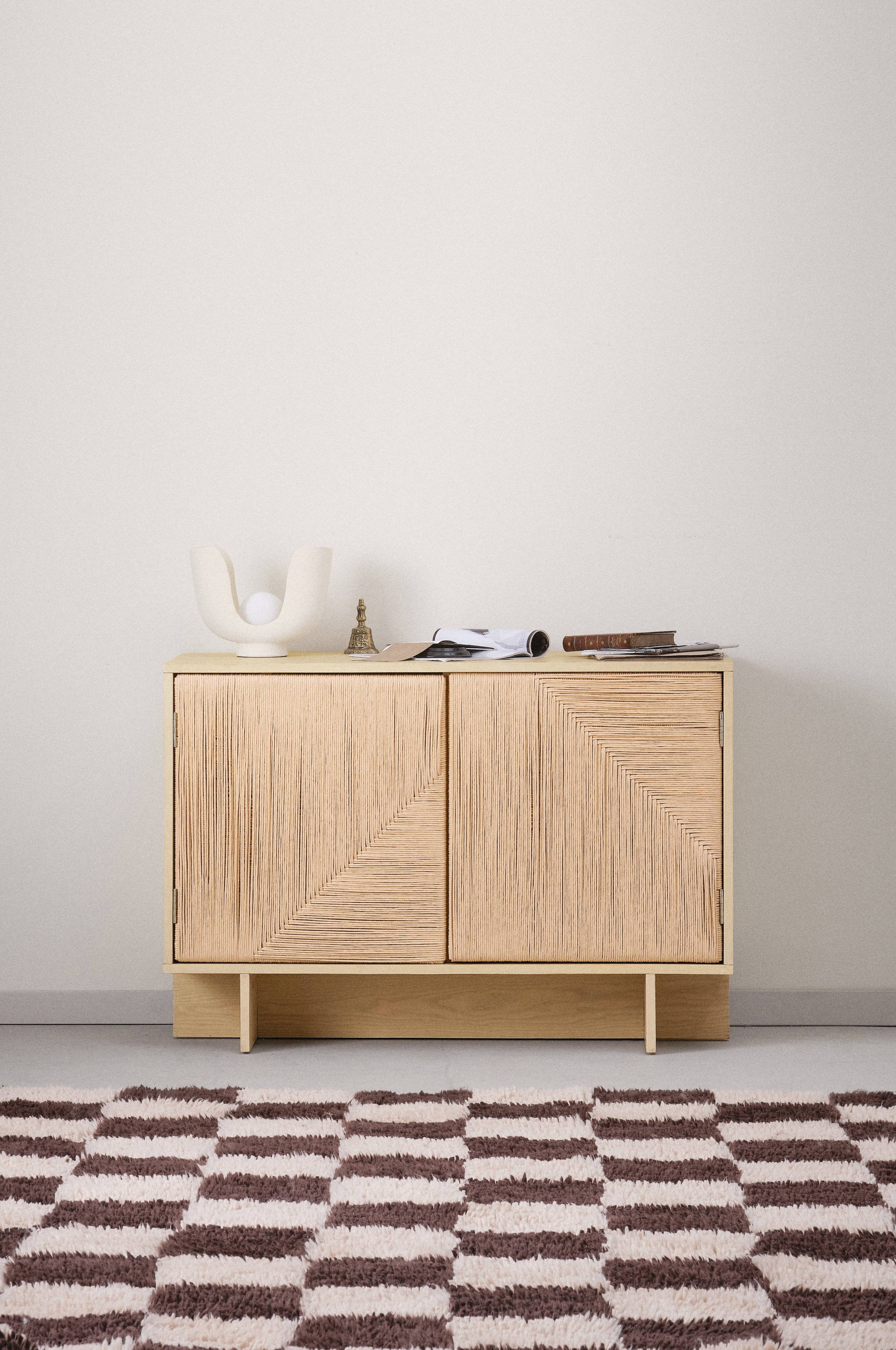 Materiały: Płyta MDF, fornir z jesionu i papierowy sznurek.