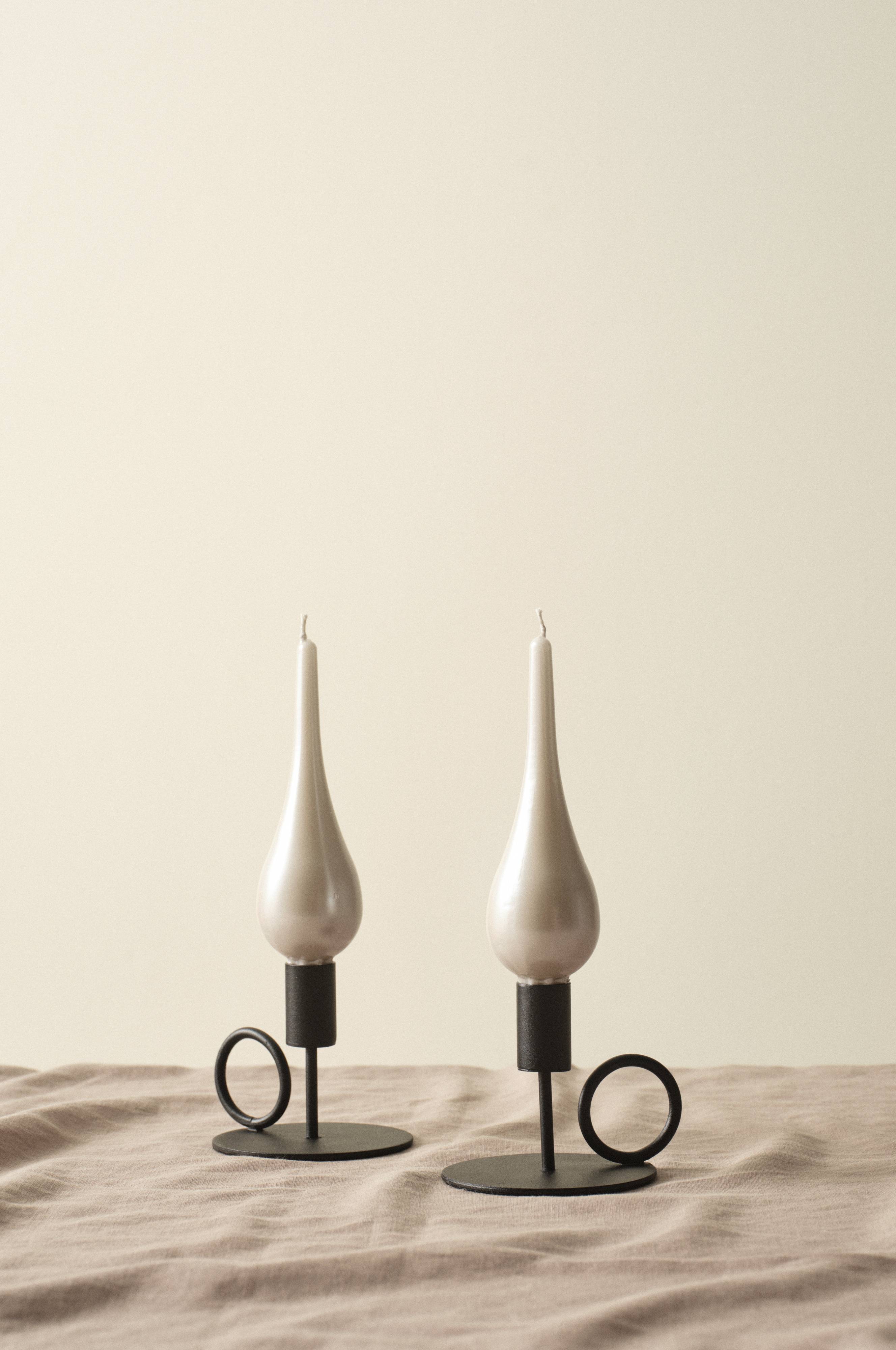 2 świece ze stearyny w kształcie kropli maczane w barwniku o perłowym połysku. Świece zostały wykonane ręcznie w Szwecji. Odznaczają się pięknym kształtem przypominjącym kroplę, w dolnej części zakończone są stopką, dzięki czemu mogą być wstawione do świeczników. Łatwym sposobem na stworzenie przytulnej atmosfery w domu jest zapalenie świec. Świece palą się wysokim, jasnym płomieniem, a stearyna nie zawiera oleju palmowego.