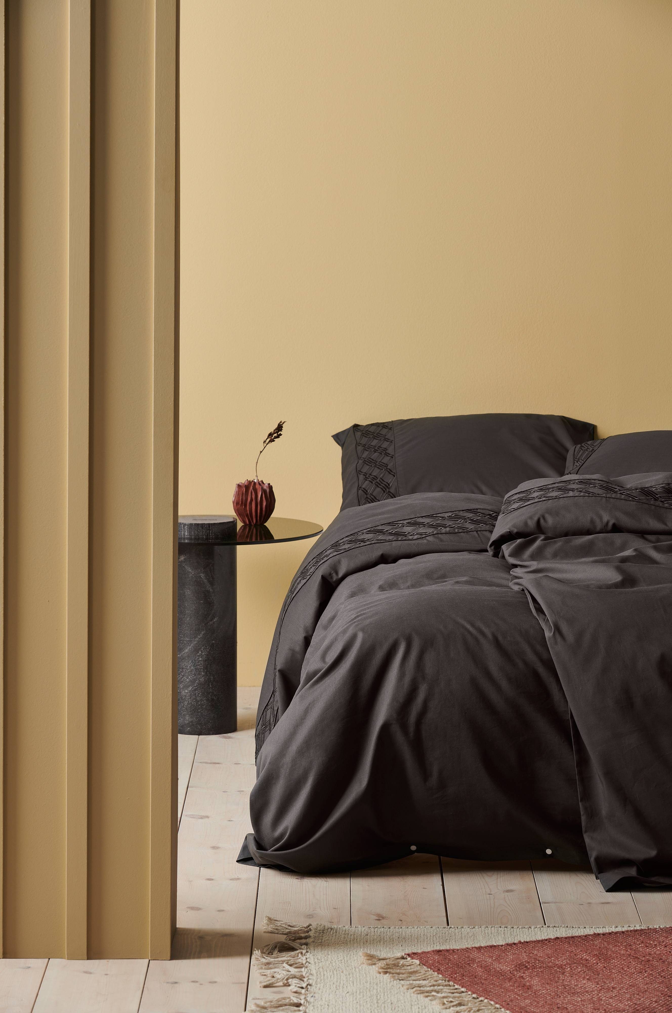 Poszwa wykonana z bawełny ozdobionej ładnym haftem. Pościel z bawełny jest przewiewna i delikatna dla ciała. Guziki z tworzywa do zapinania poszewki na poduszkę i poszwy. Gęstość splotu materiału wynosi 144 TC. (Gęstość splotu materiału oznacza ilość przeplecionych ze sobą nici, thread count, na cal kwadratowy materiału. Im wyższa gęstość tym lepsza jakość).