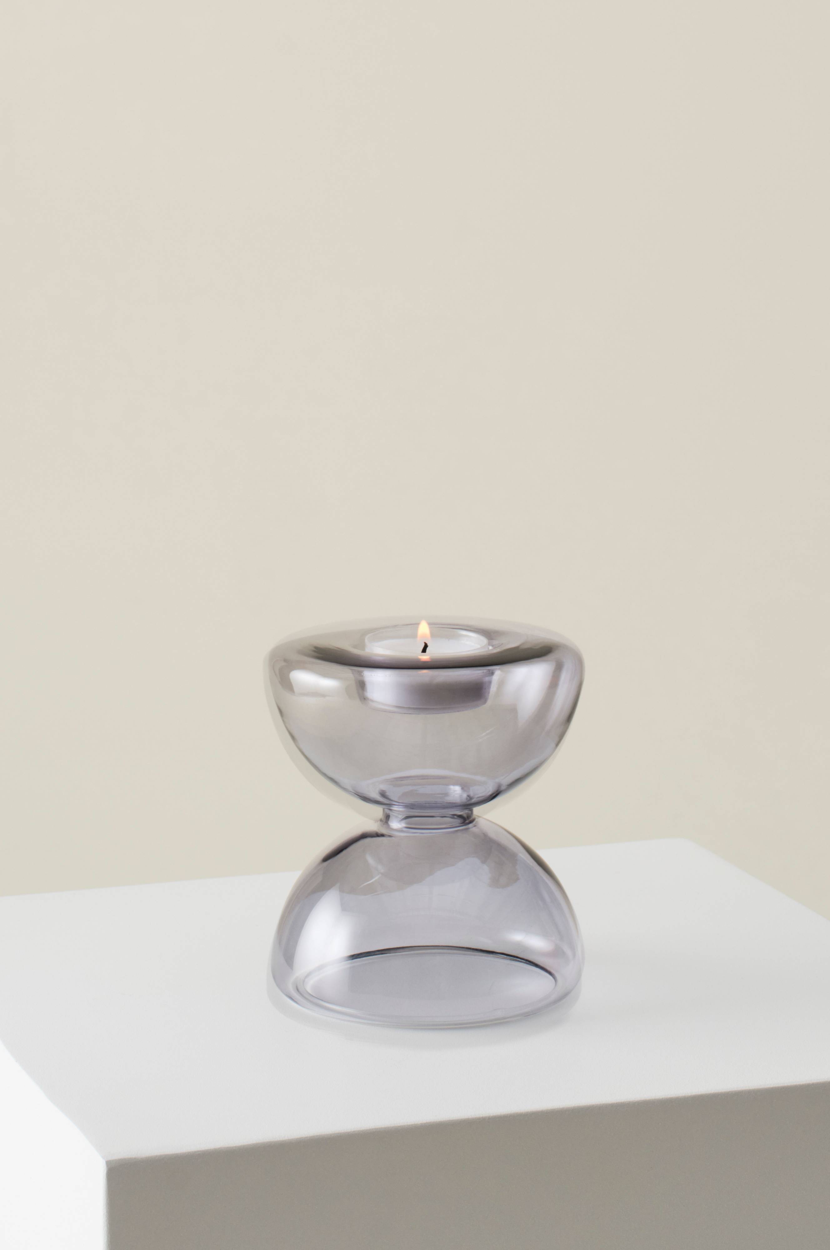 ECHO to ręcznie wykonany świecznik ze szkła, który odznacza się miękkimi kształtami przypominającymi klepsydrę. Do świecznika pasują podgrzewacze typu tealight.