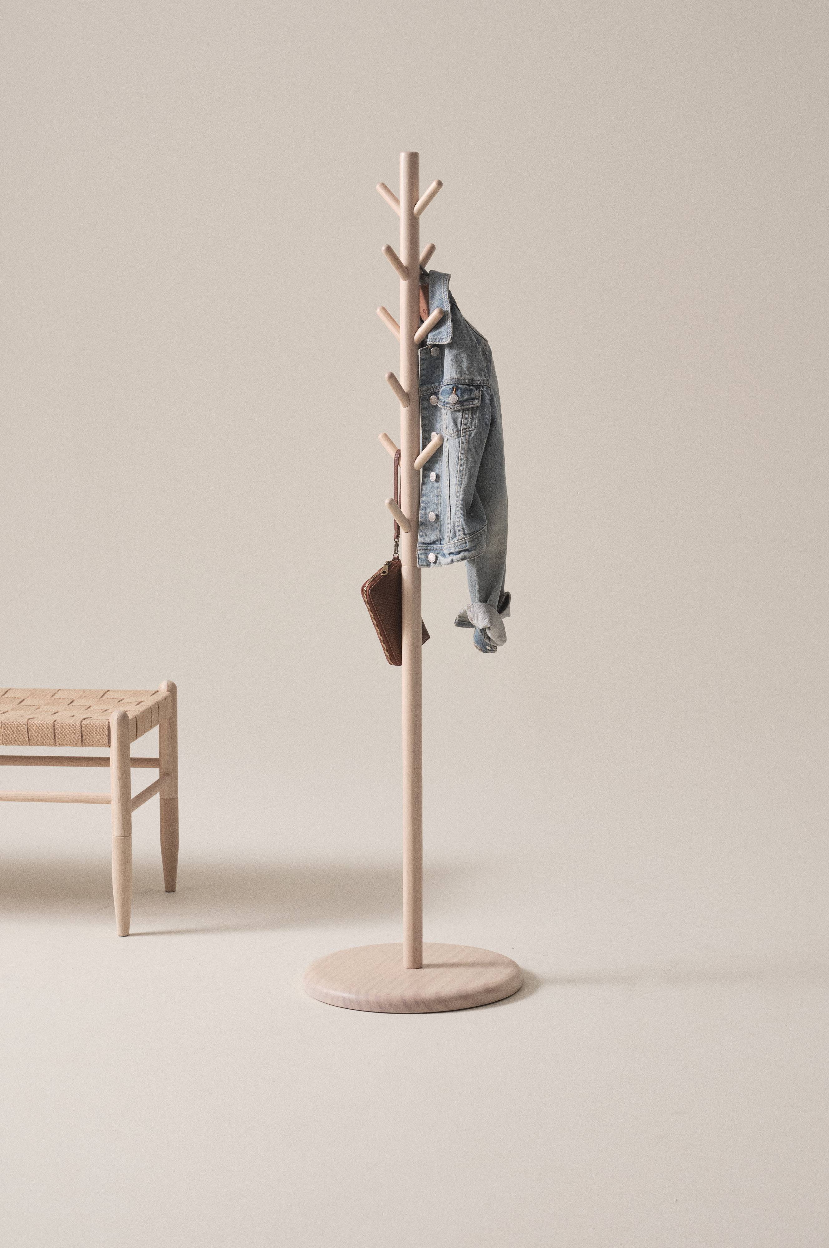 Wieszak na ubrania wykonany z drewna sosnowego z certyfikatem FSC. Ten wolnostojący wieszak o stylowym, nordyckim designie wyposażony jest w 12 prostych kołków do zawieszenia, skierowanych pod kątem ku górze, dzięki czemu ubrania wiszą pewnie i się nie ześlizgują. Produkt jest praktyczny, ponieważ nie wymaga montażu do ściany i może być łatwo przestawiany w miarę potrzeby. Oczywiście świetnie sprawdzi się w przedpokoju, ale będzie przydatny również w sypialni do zawieszenia ubrań, które chcesz mieć pod ręką. Wymaga częściowego montażu.