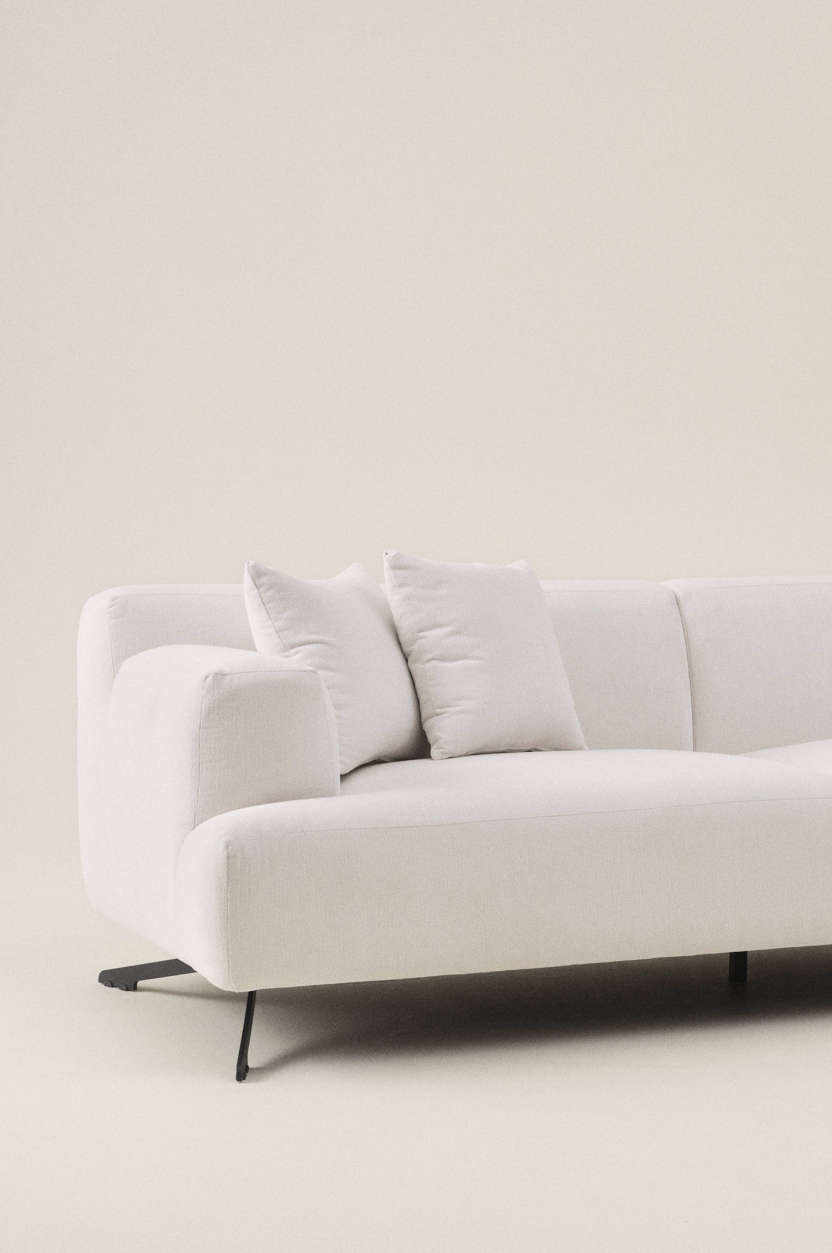 3-osobowa sofa EDE to obszerna i zachęcająca sofa o miękkich kształtach, a czarne metalowe nóżki ładnie kontrastują z miękkością. Szerokie podłokietniki są wygodnym detalem, a dla tych, którzy są bardziej skłonni do estetyki, kolory są atrakcyjne i sprawiają wrażenie nowych i odświeżających. Sofa ma ramę ze sklejki z miękką piankową wyściółką, która zapewnia wspaniały komfort siedzenia. Nogi mają czarną powłokę proszkową.