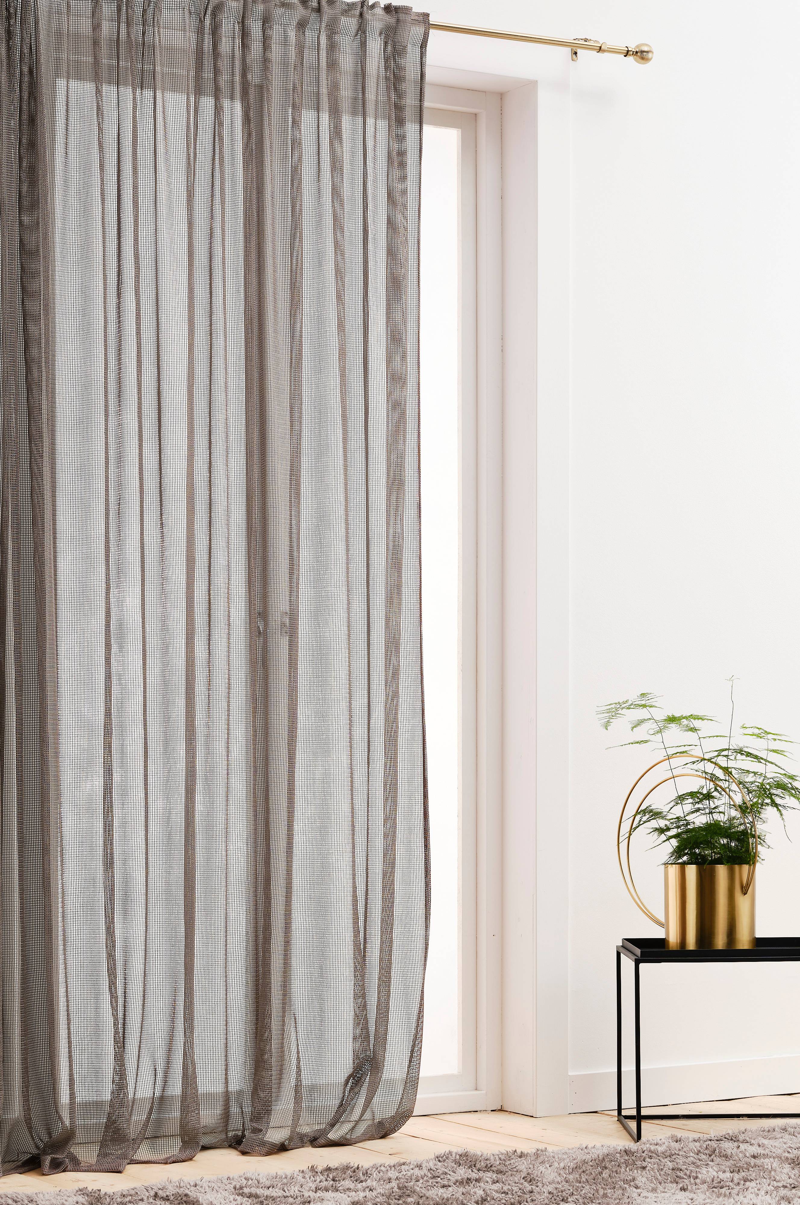 Jednokolorowa zasłona z poliestru. EMERY to przezroczysta firanka tkana delikatnymi nićmi w siatkowy wzór, dzięki któremu zyskuje nowoczesny styl i ładnie opada. Firanka ma wszytą taśmę wielofunkcyjną i można ją zawiesić na haczykach lub przy użyciu krytych szelek.
