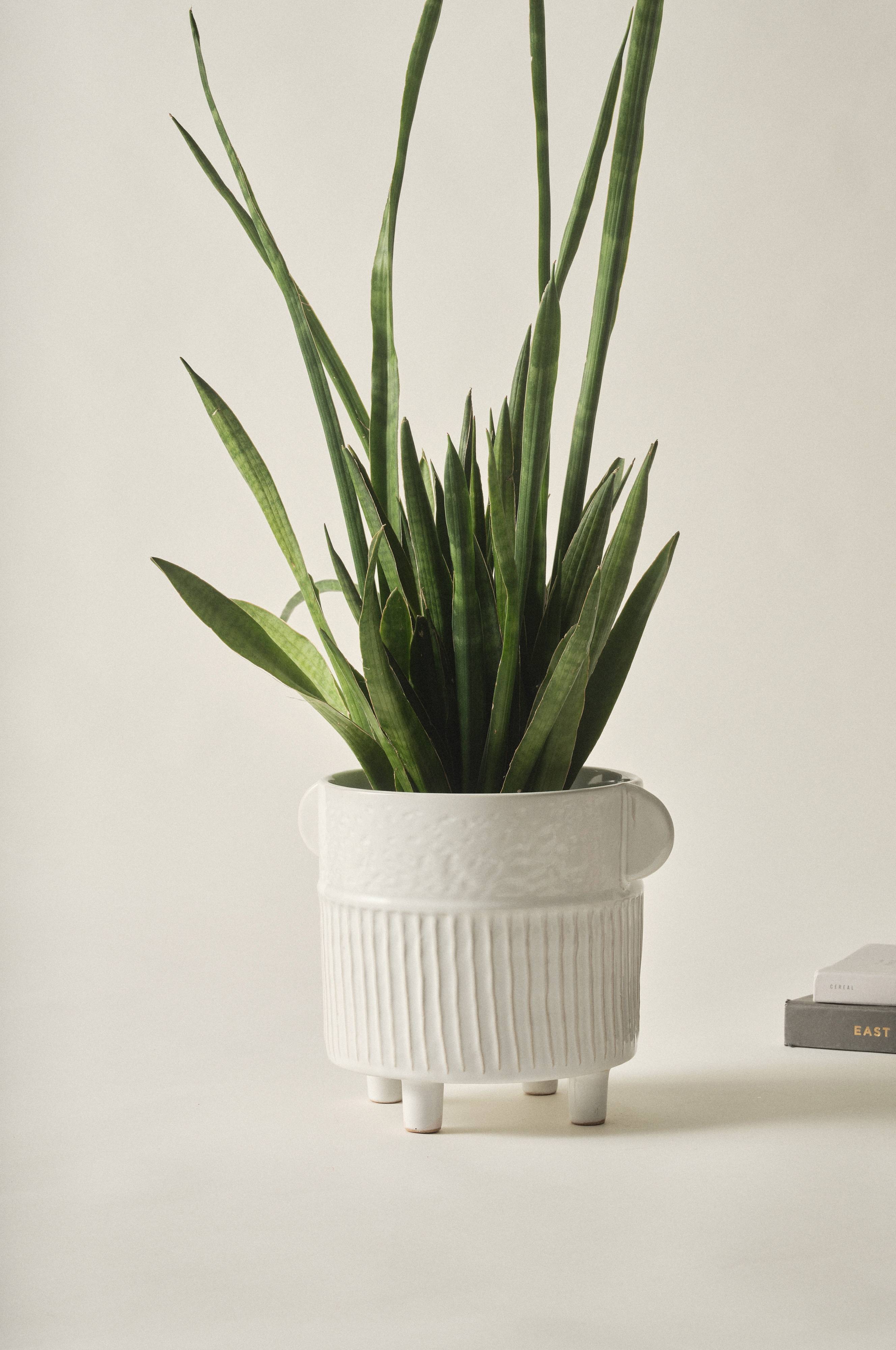 Ręcznie wykonana doniczka z melanżowym szkliwem, w której szkliwione jest również wnętrze. Forma doniczki jest absolutnie wyjątkowa, ze żłobionym wzorem, czterema nóżkami i dwoma uszkami. Piękne ręczne wykonanie sprawia, że każda doniczka jest wyjątkowa. Wyroby ceramiczne mogą przepuszczać wilgoć.