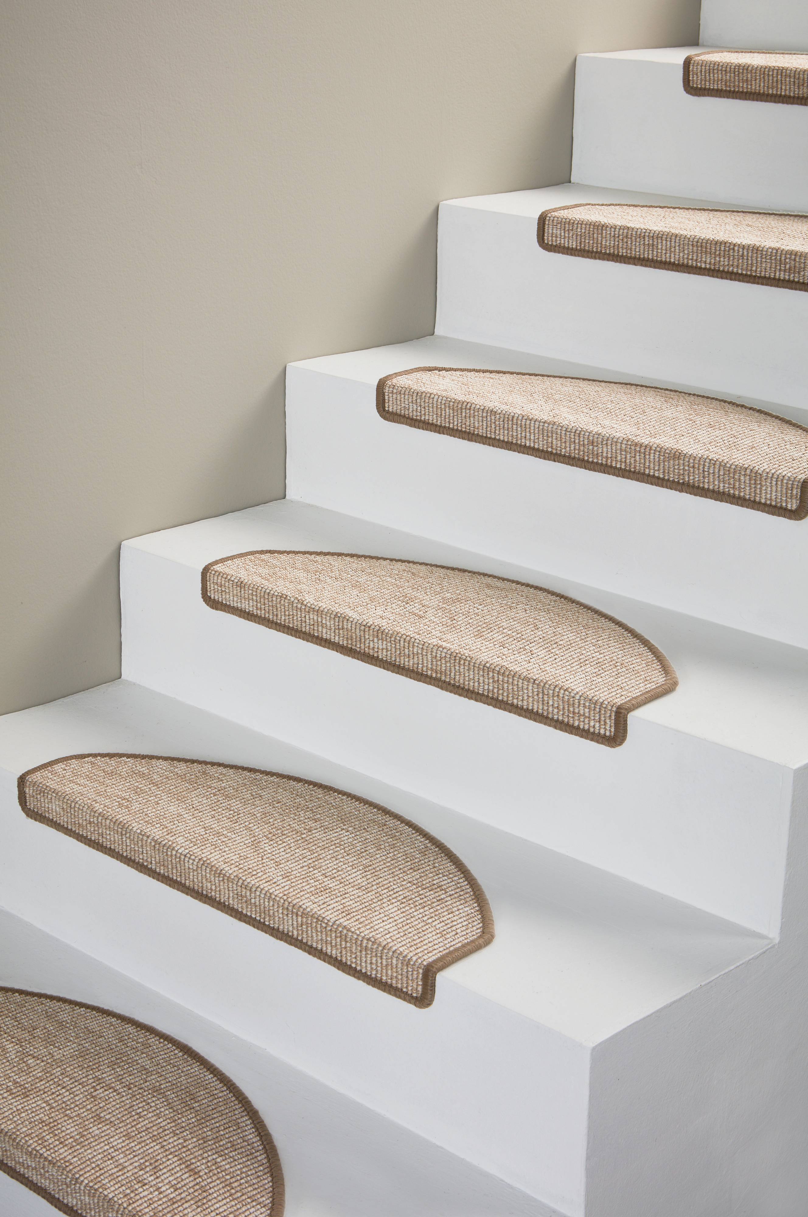 Dwie nakładki na schody z tkanego polipropylenu i poliestru. Nakładki ESCALIER z samoprzylepnym spodem sprawiają, że schody stają się bardziej przytulne i bezpieczne. Nakładki są jednokolorowe, mają prostokątny kształt i pasują do większości schodów. Nakładki posiadają zagiętą plastikową listwę z dwustronną taśmą, która utrzyma dywanik na miejscu. Grubość: 6 mm.
