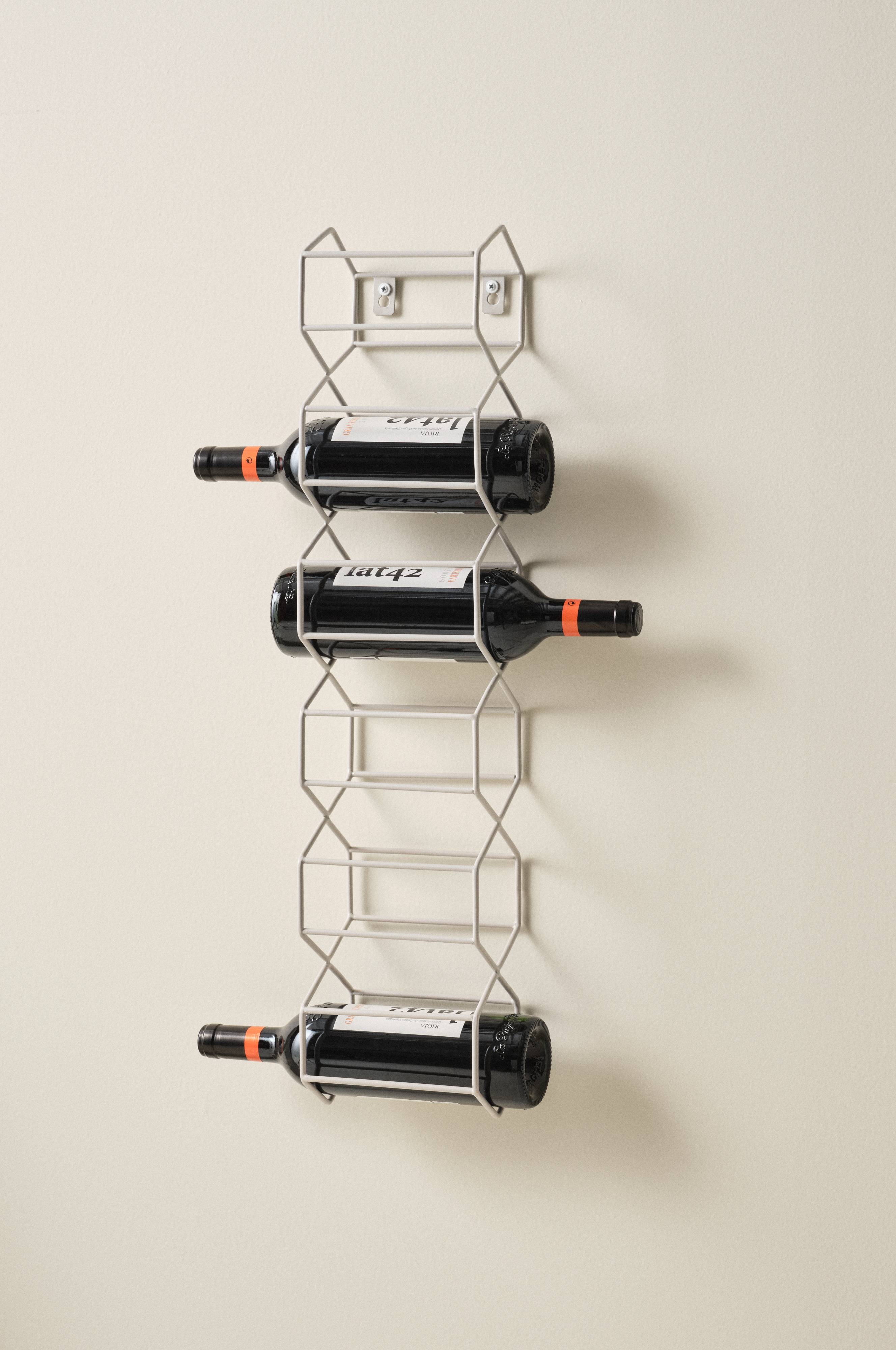Metalowy stojak na wino, do zawieszenia na ścianie. Stylowy i łatwy do umieszczenia stojak na wino, który stanie się pięknym elementem wystroju Twojego domu.