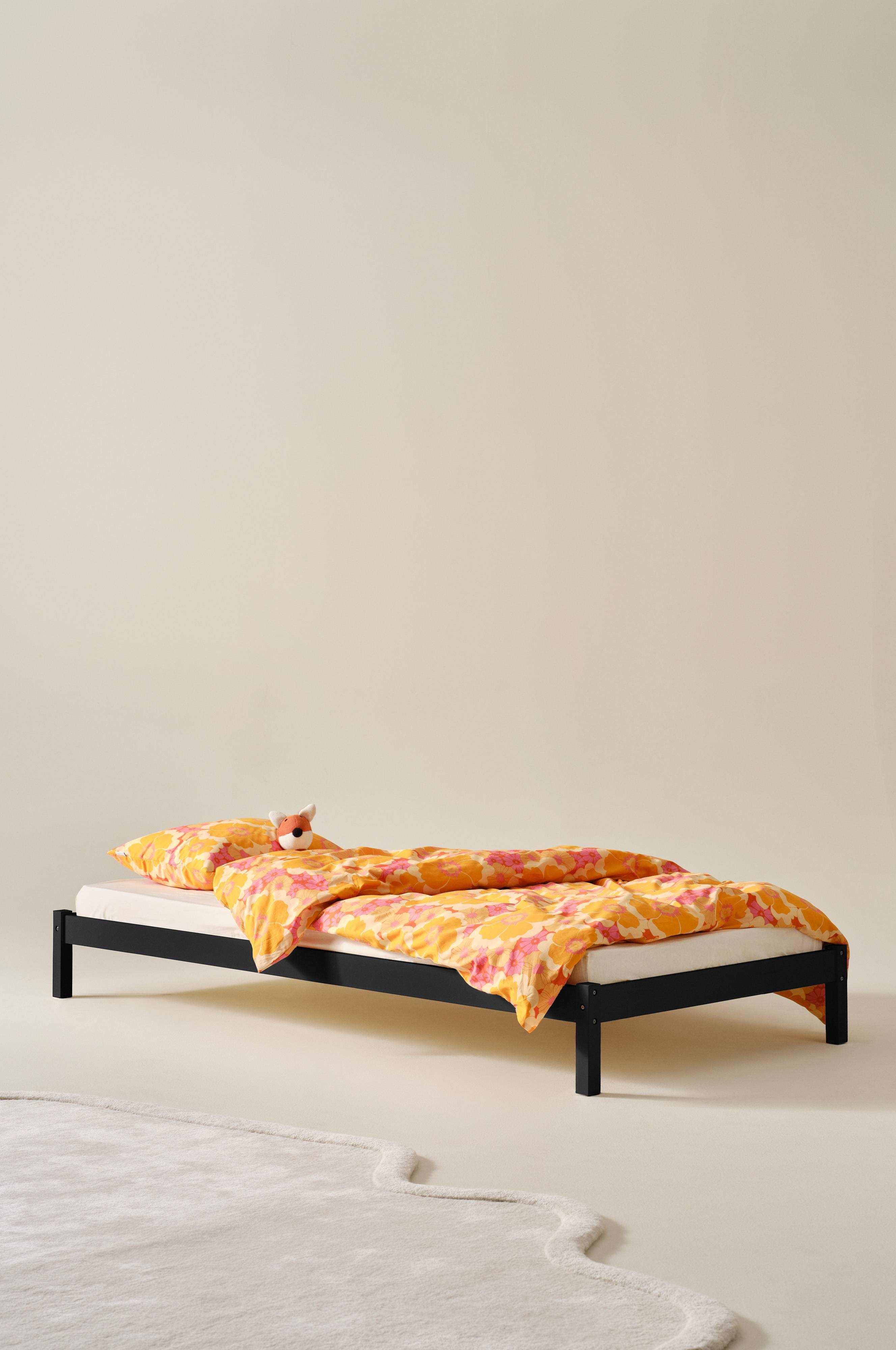 Rama łóżka EVO tchnie naturalny urok do pokoju dziecięcego. Łóżko zostało wykonane z litego drewna sosnowego z certyfikatem FSC. Rama łóżka jest dostępna zarówno w wersji malowanej, jak i nieobrobionej. Nieobrobiony materiał sosnowy z czasem nabiera żółtego odcienia. Nieobrobiona sosna jest gotowa do pomalowania i spersonalizowania.
