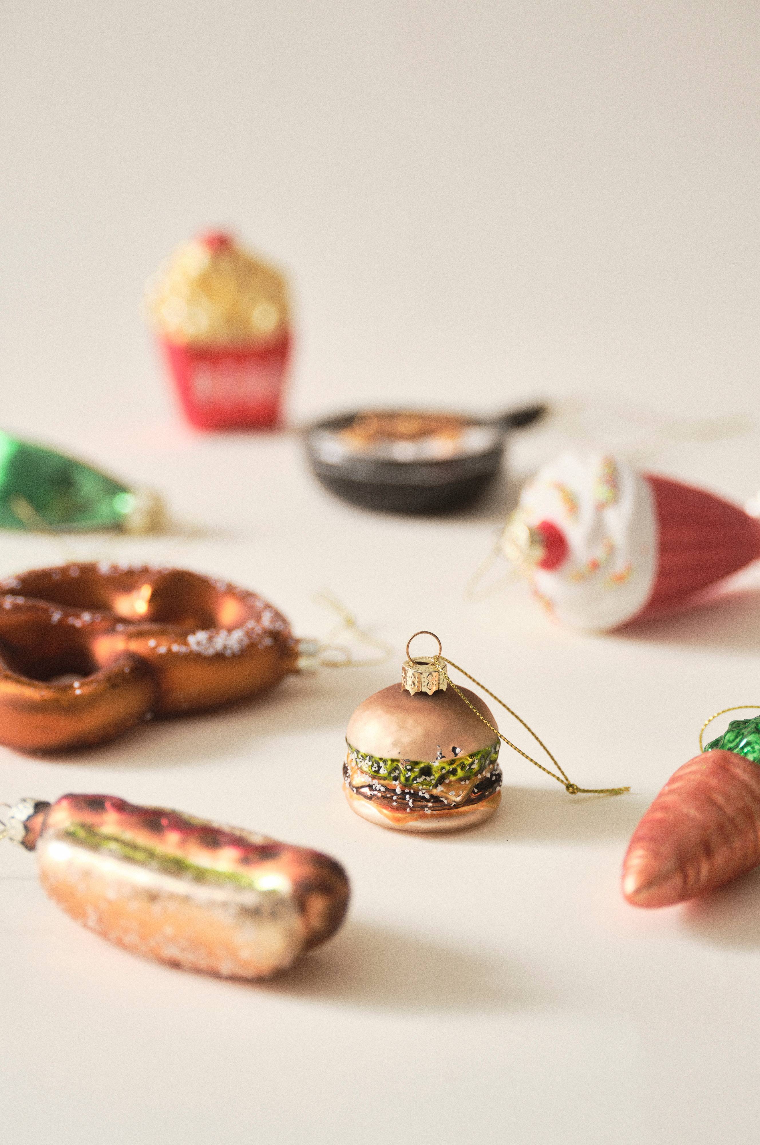 8 wiszących dekoracji wykonanych ze szkła. Opakowanie zawiera osiem różnych modeli, z których każdy jest związany z jedzeniem. Wszystkie wyposażono w niewielki uchwyt do zawieszenia, więc możesz niezwłocznie umieścić je na przykład jako dekorację w kuchni.