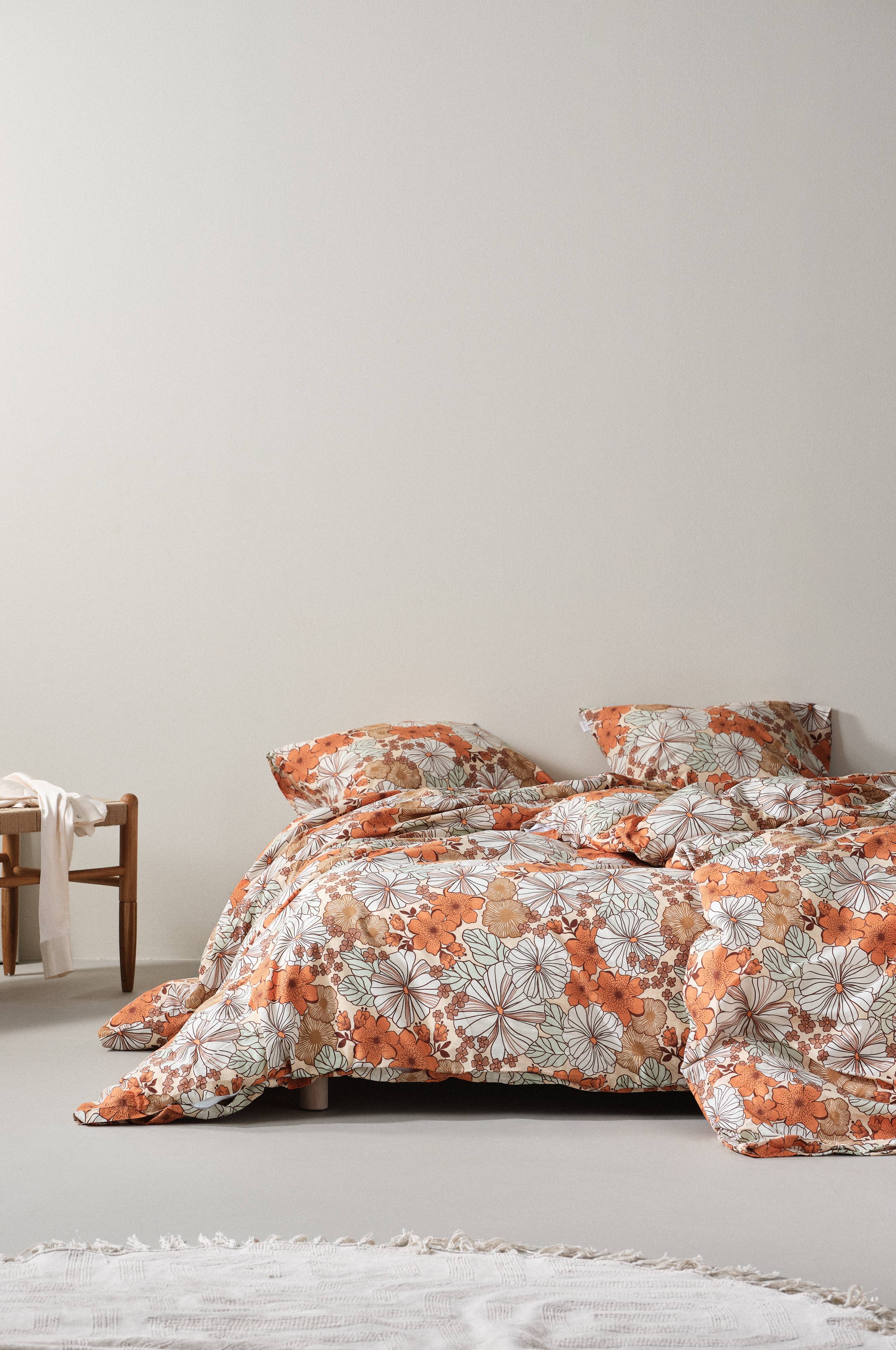 Poszwa na kołdrę z cienkiej nici, ciasno tkanej bawełny wysokiej jakości. Tkanina ma piękny kwiatowy wzór nadrukowany w przyjemnej gamie kolorów. Jest również prana enzymatycznie, co nadaje jej przyjemną miękkość i lekko zużyty wygląd. Poszwa na kołdrę ma zatrzaski do zamykania.