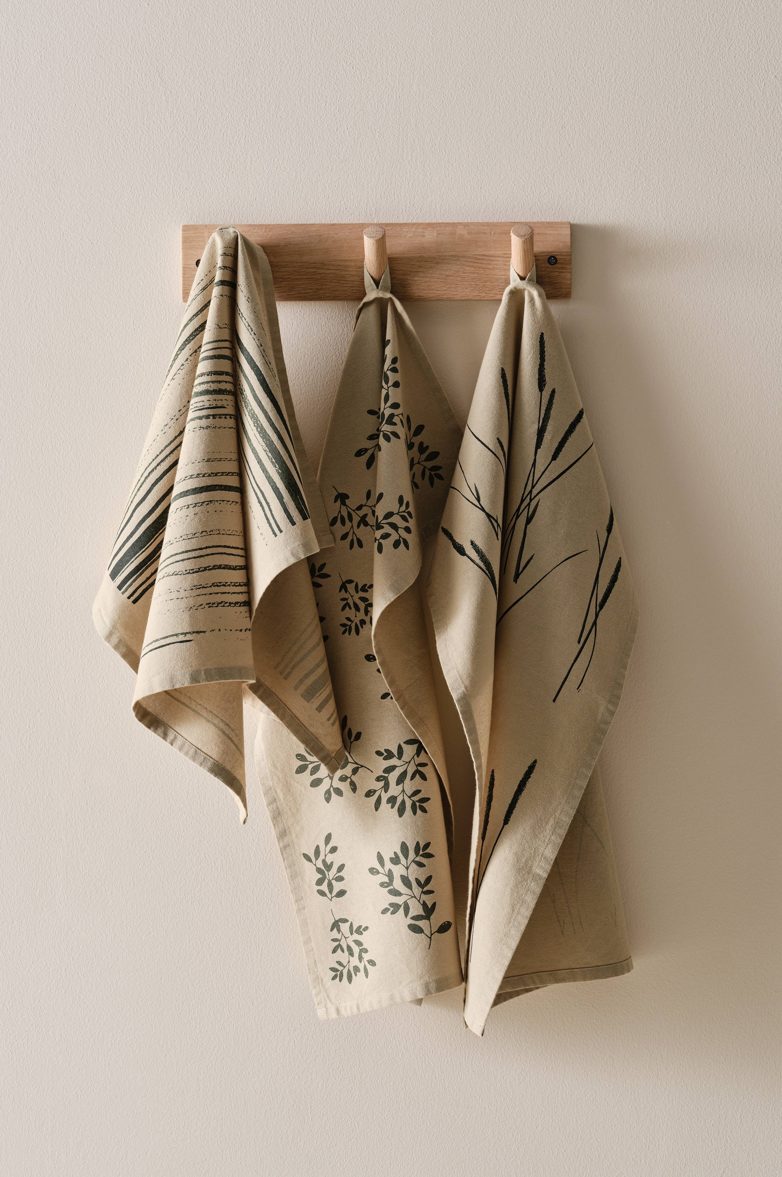 3-pak ręczników kuchennych FRANKLYN zawiera trzy różne i ładne motywy. Wykonane z miękkiej, pranej bawełny o dobrej chłonności do codziennego użytku. Trzy ręczniki przydadzą się do osuszania naczyń lub zawijania w nie świeżo upieczonego chleba.