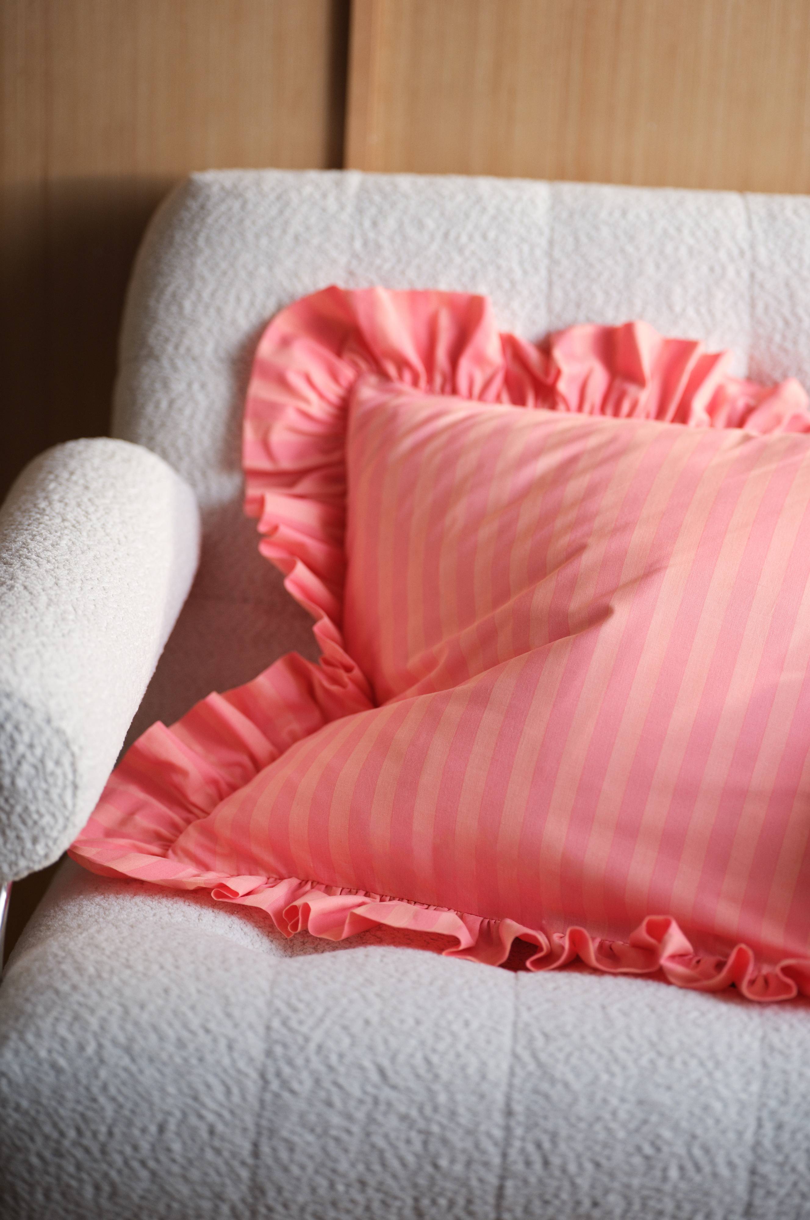 Poszewki na poduszki FREDDIE wprowadzą dynamiczny akcent do Twojego salonu dzięki odważnemu wzorowi w paski i uroczym marszczonym krawędziom. Zaprojektowane z myślą zarówno o stylu, jak i komforcie, poszewki te przekształcą Twoje miejsce do siedzenia w tętniący życiem punkt centralny. Idealne do łączenia i dopasowywania, FREDDIE wzbogaci Twój wystrój, zapewniając jednocześnie zachęcającą atmosferę do relaksu i spotkań towarzyskich. Odśwież swój wystrój za pomocą tych wspaniałych poszewek na poduszki.