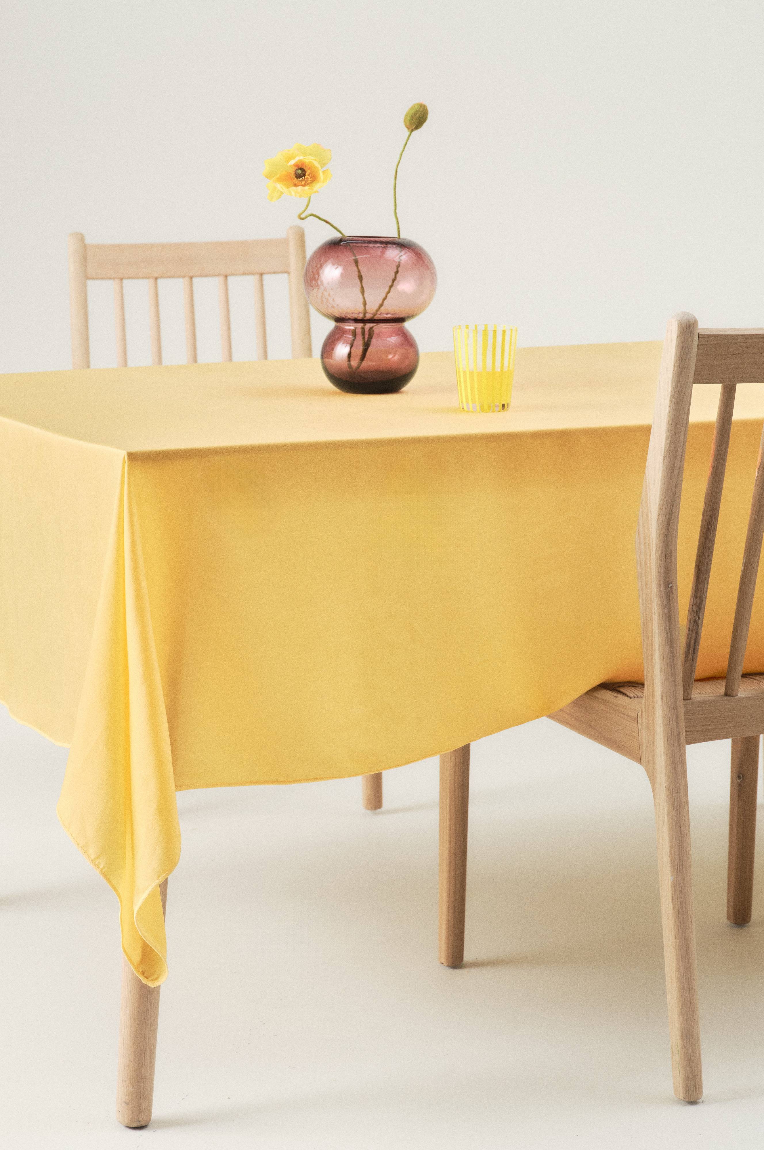 Wskazówki/rady: Cudowna tkanina, z której wykonano obrus, w połączeniu z jego dużym rozmiarem sprawia, że materiał elegancko opada po bokach stołu.
