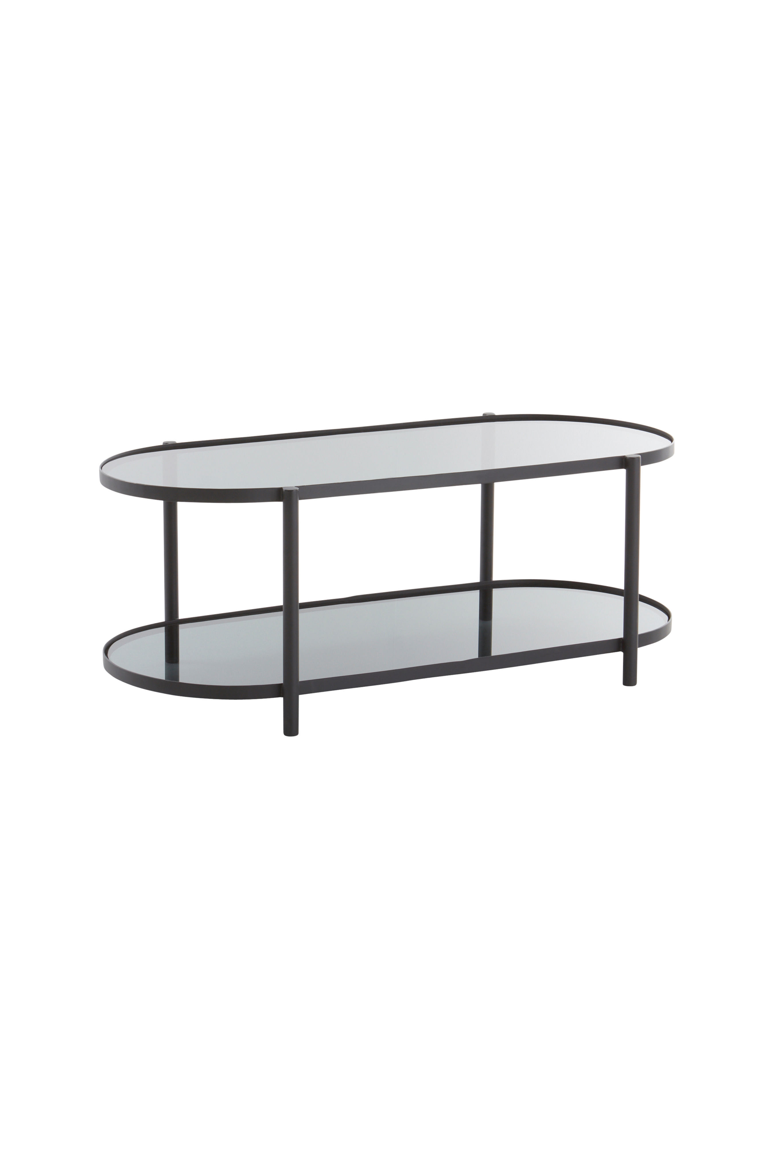 Stolik kawowy z metalu lakierowanego proszkowo, którego blat i półka wykonane są z dymionego szkła. GENT nada salonowi eleganckiego i ponadczasowego charakteru.